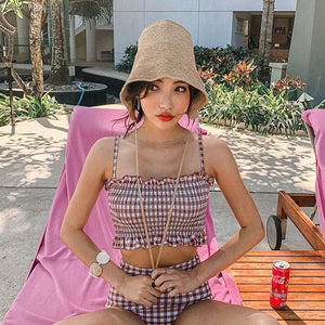 Women Mid Waist Bikini Set Bandeau Swimwear Biquinis Women Two Pieces Swimsuit Sexy Bathing Suit 2022 new