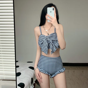 Korean Style Sexy Backless Two Pieces Women Bikini Set Plaid Push Up Swimsuit Beach Summer Bandage Swimwear 2022