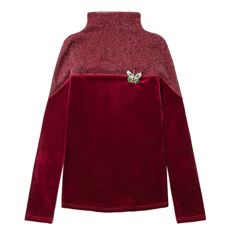 Gold Velvet Stitching Bottoming Shirt New 2021 Spring Long Sleeve Women T-shirt Elegant Slim Mesh Tops Plus Size Tees