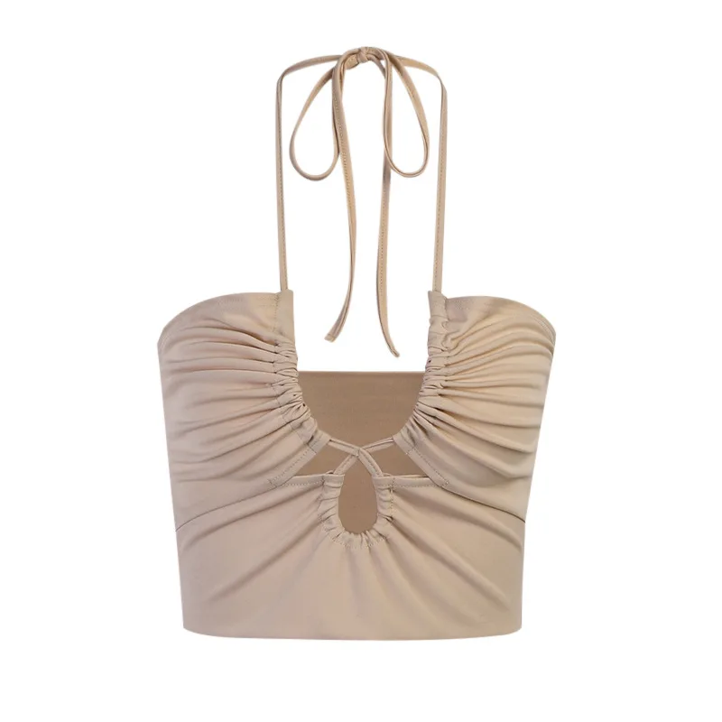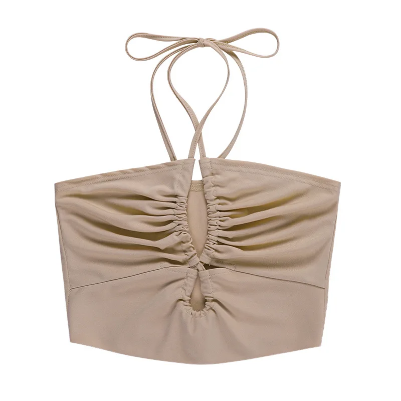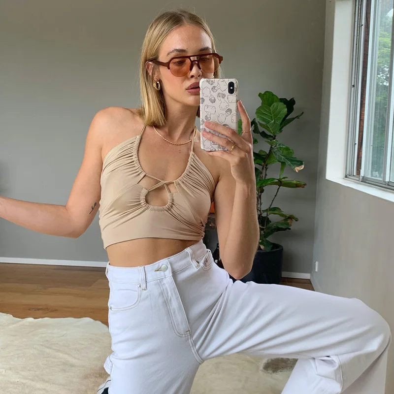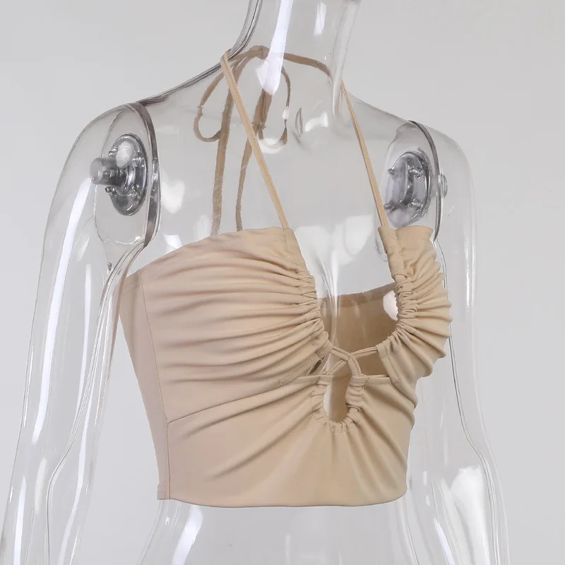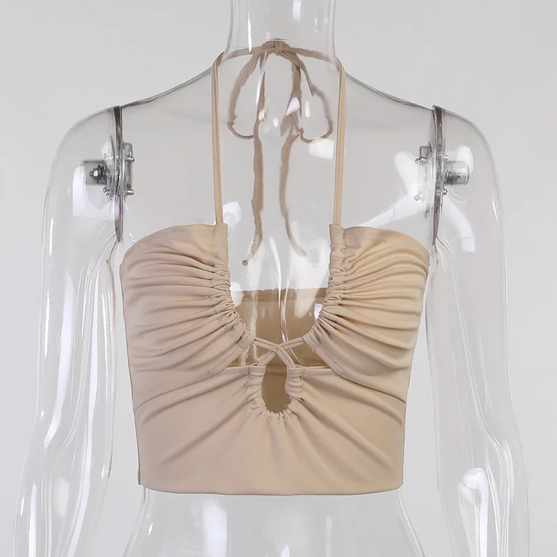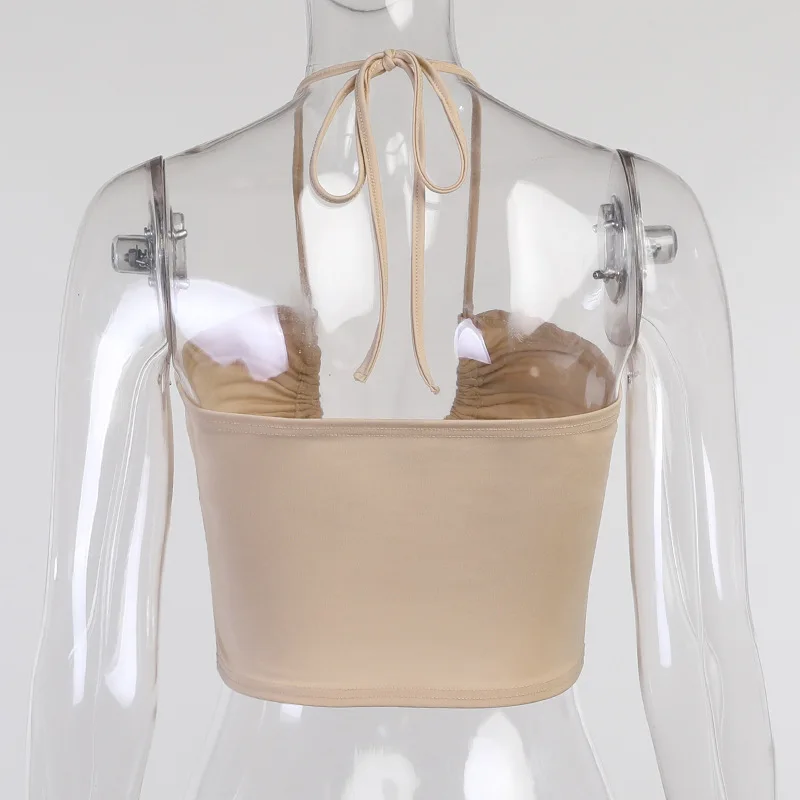 Halter Neck Crop Top Female Slim Backless Sexy Party Clubwear Cross Summer Tops For Women Y2K FashionCamis Pink Tees