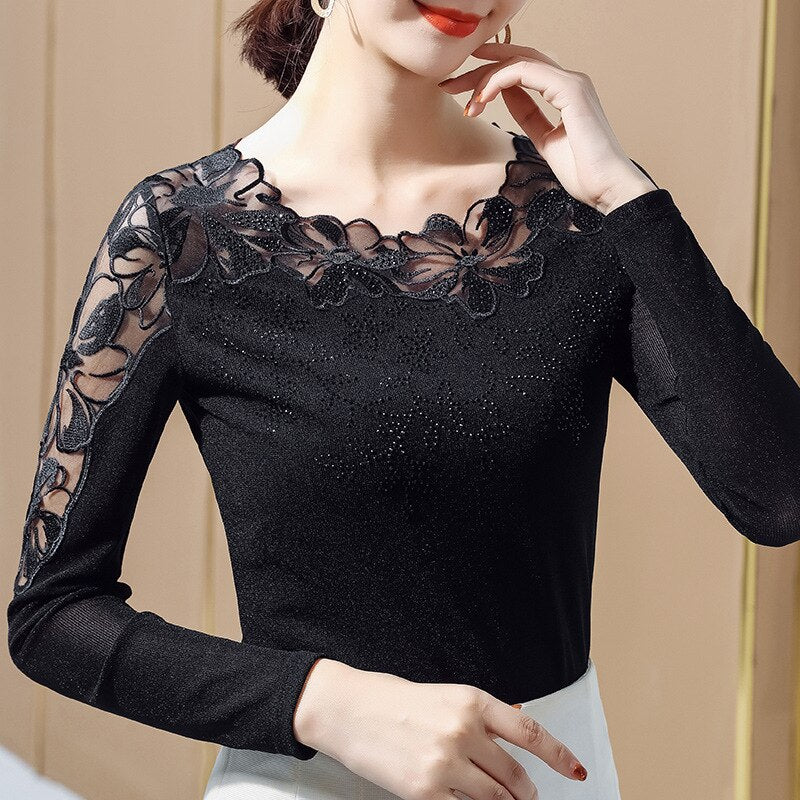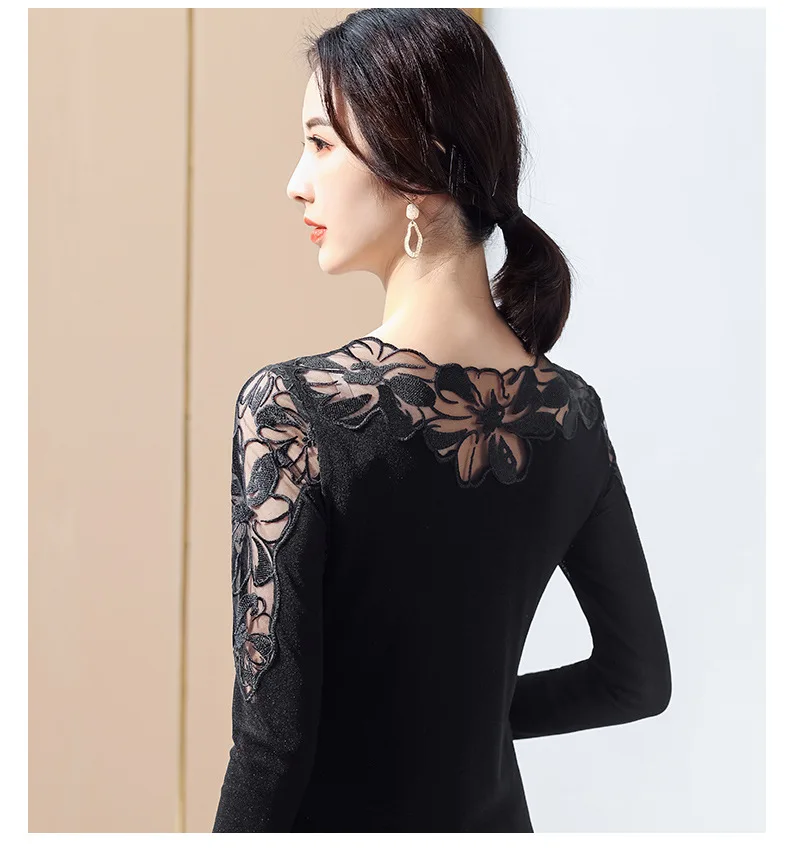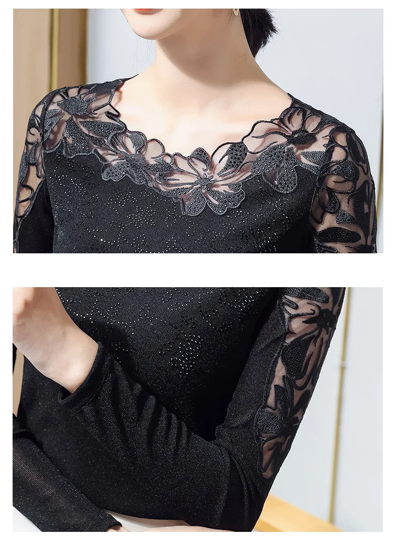 New 2021 Spring Long Sleeve Women Mesh Tops Fashion Casual Sexy Hollow Out Lace T-Shirt Plus Size M-4XL Mesh tees