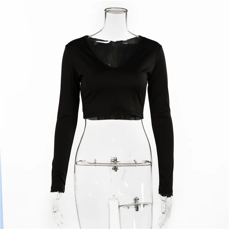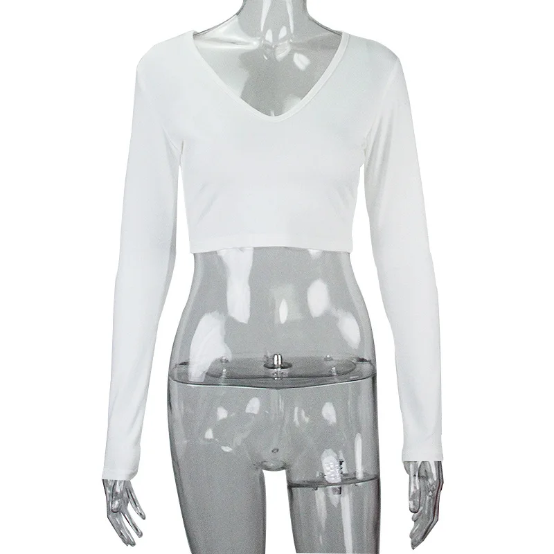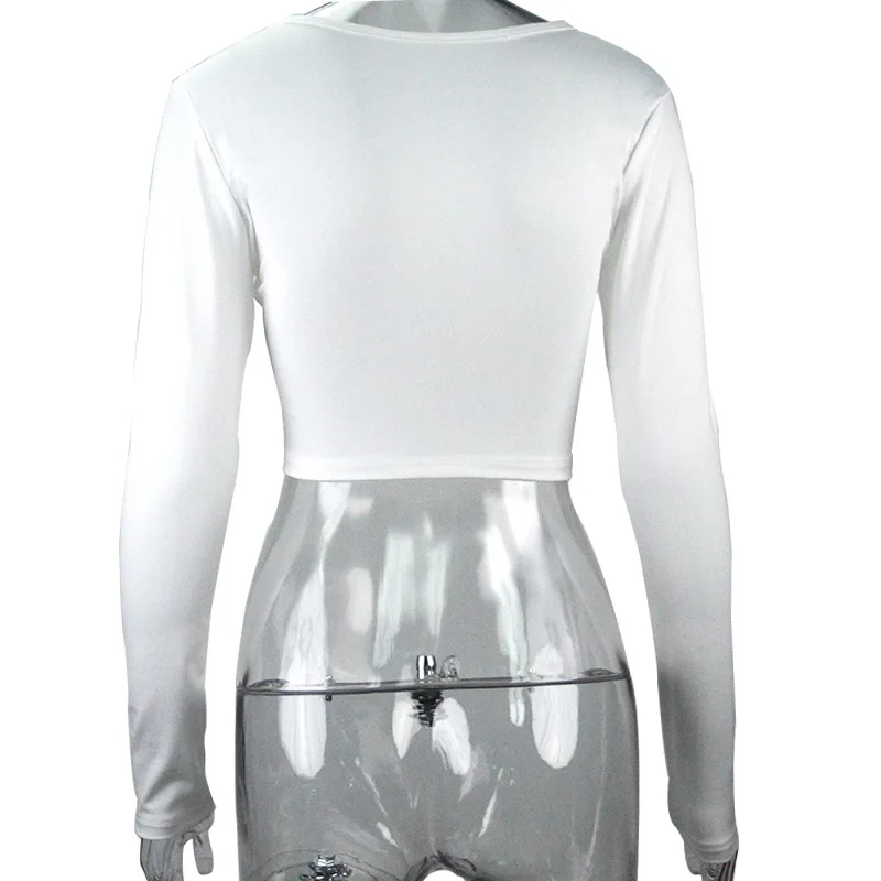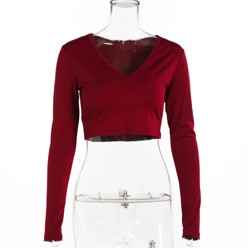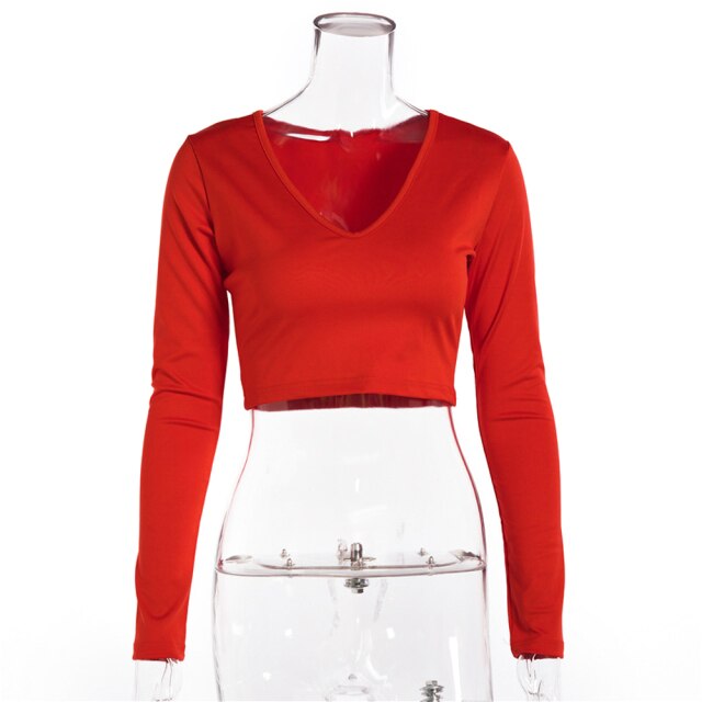 Women Sexy Harajuku T Shirt V Neck Tees Long Sleeve Top Cropped Tops Women Teeshirt Summer Casual Tops Red White Fashion 2021