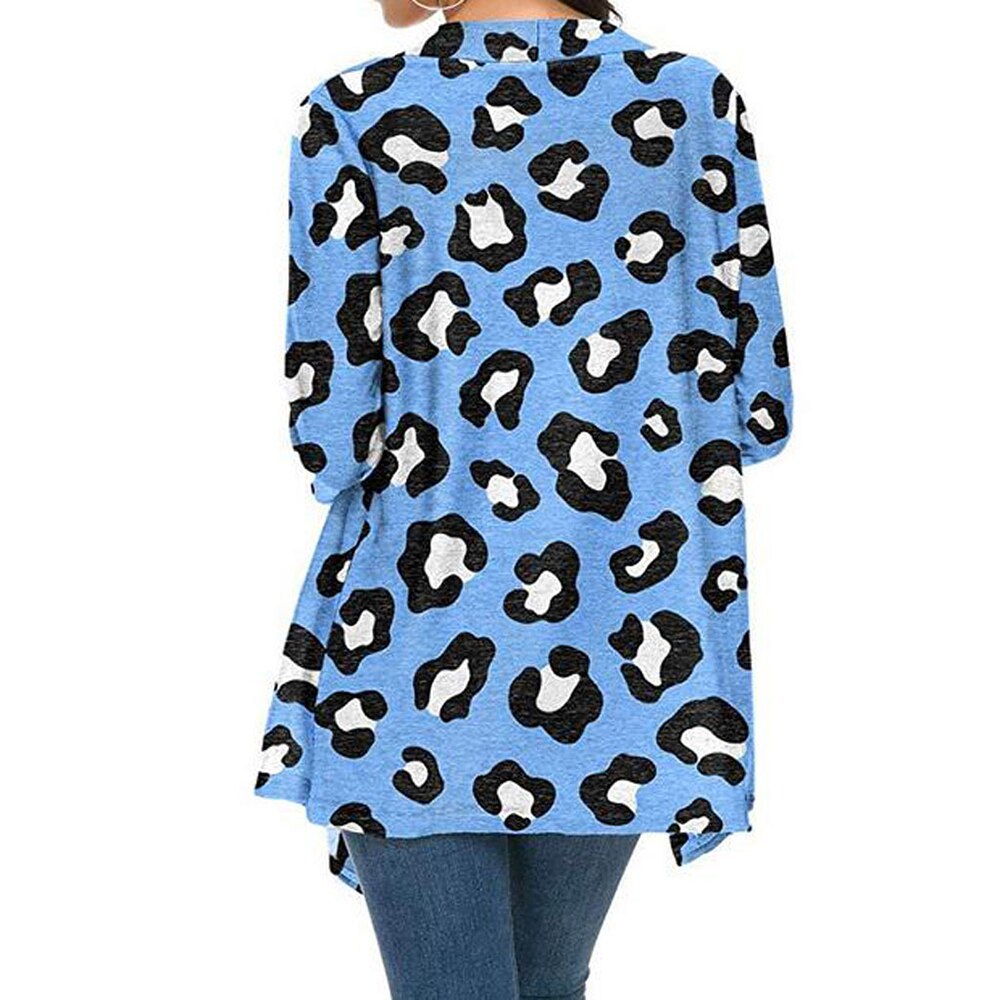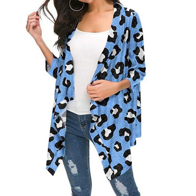 Casual Leopard Print Cardigan Women Tops Spring Autumn Fashion Long Sleeve Shawl Kimono Coat Woman Clothing Blue Blouses