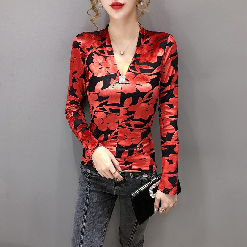 New 2020 Autumn Winter Women Tops Fashion Sexy V-Neck Print Tops And Shirt Plus size Women clothing blusas