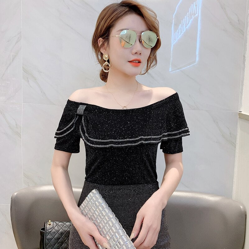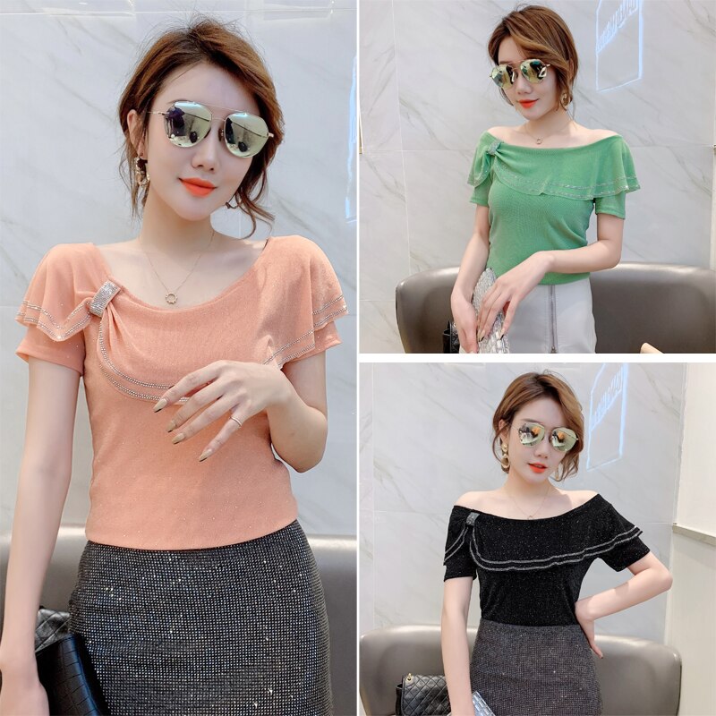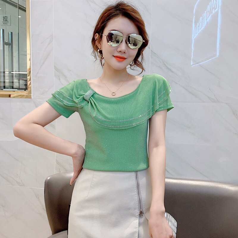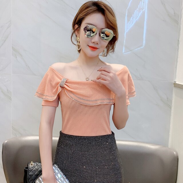 New 2021 Summer Short Sleeve Women Tops And Shirt Fashion Casual Slash Neck Mesh T-Shirt Plus Size Ruffles Blusas