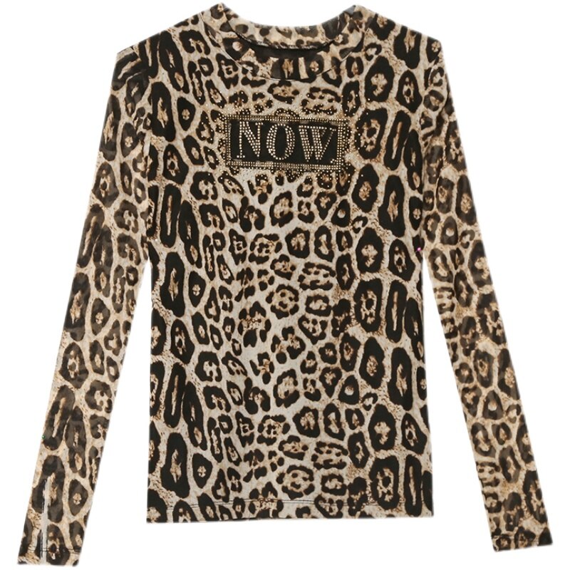 New Autumn Winter Women Tops Fashion Long Sleeve Hollow Out Hot Drilling Mesh T-Shirt Plus Size Women Clothing