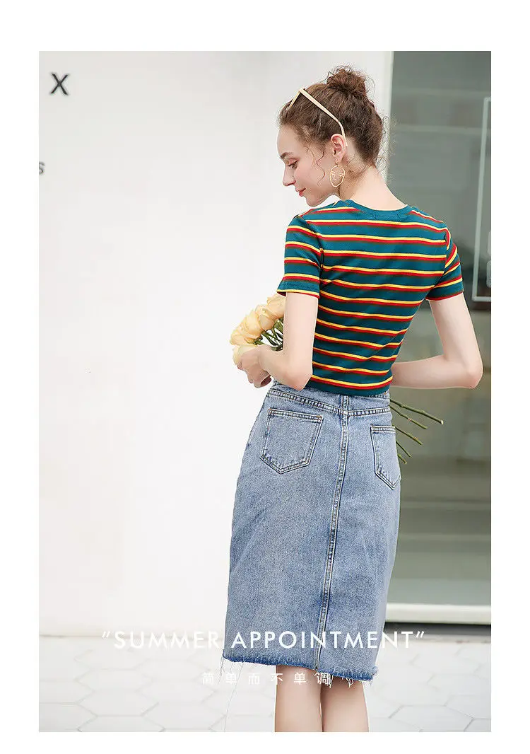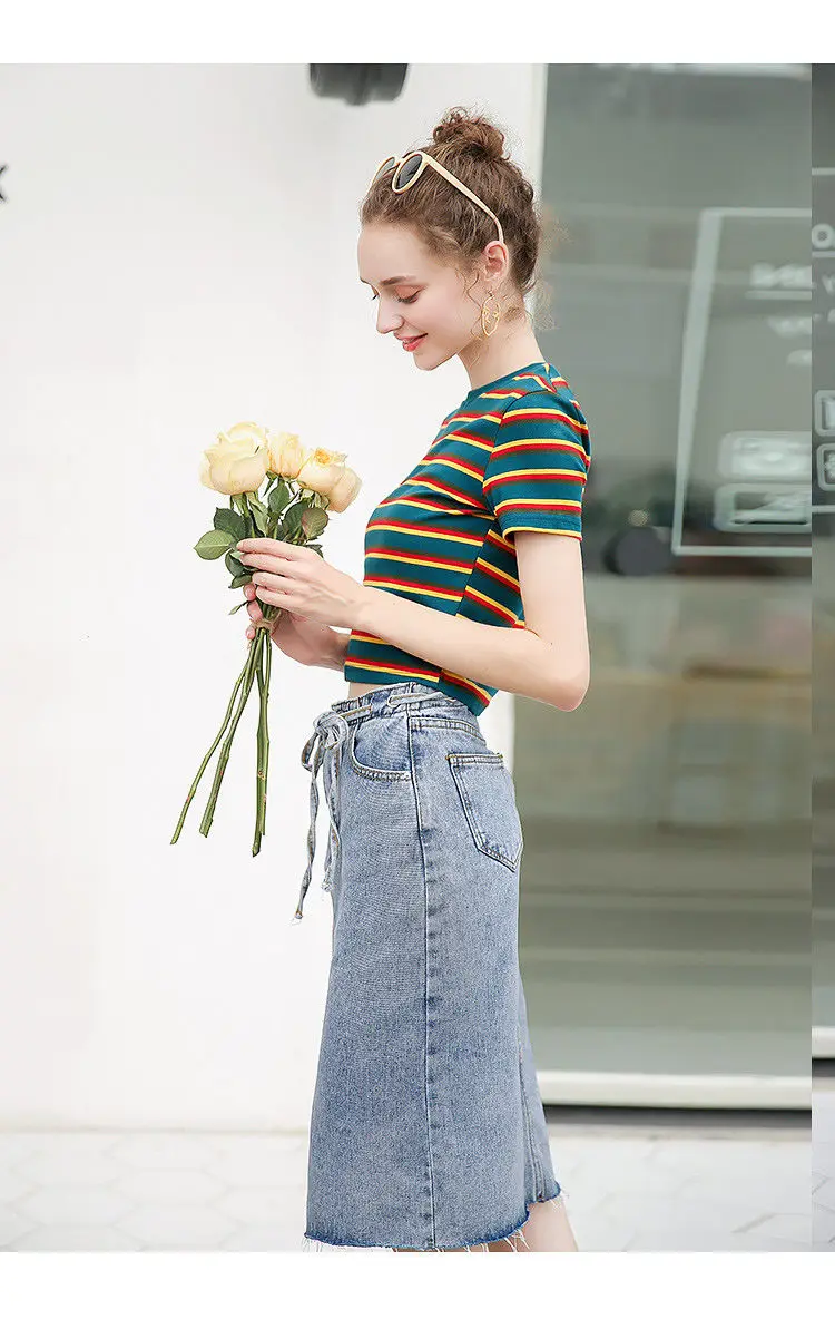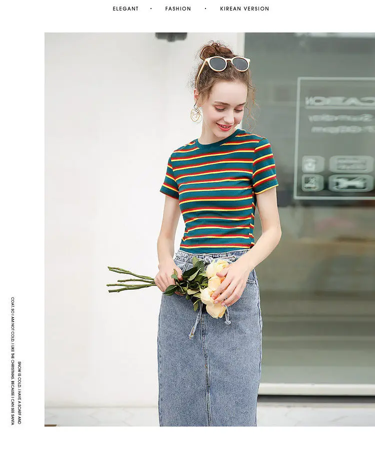 Stripe Elegant V Neck Female Summer Top Lace T Shirt Shirts Feminina For Women Tops Friends Tees Tshirt Korean Clothes
