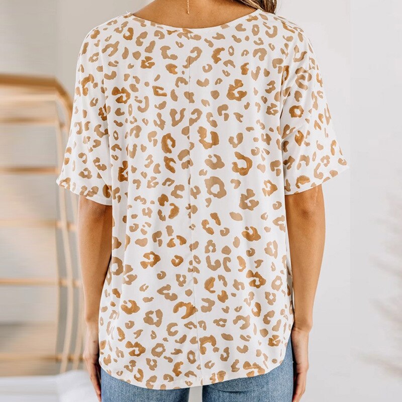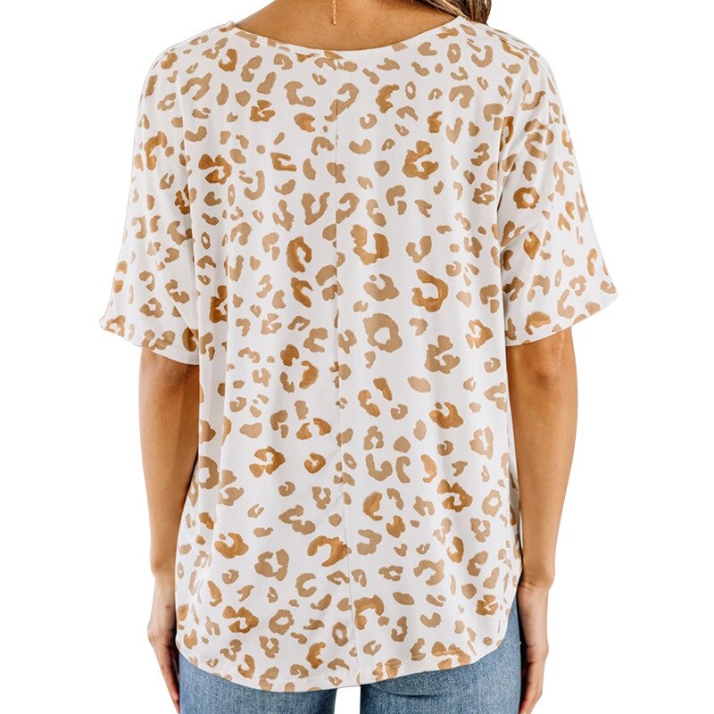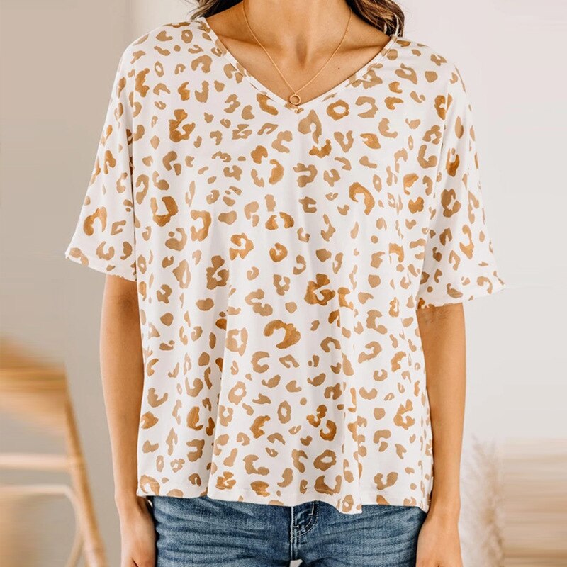Women Tops Blouses 2021 Spring Summer Leopard Short Sleeve Blouse Shirt V Neck Pullovers Cotton Blouse Shirts Blusas Camisa