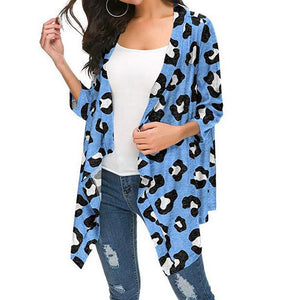 • Casual Leopard Print Cardigan Women Tops Spring Autumn Fashion Long Sleeve Shawl Kimono Coat Woman Clothing Blue Blouses