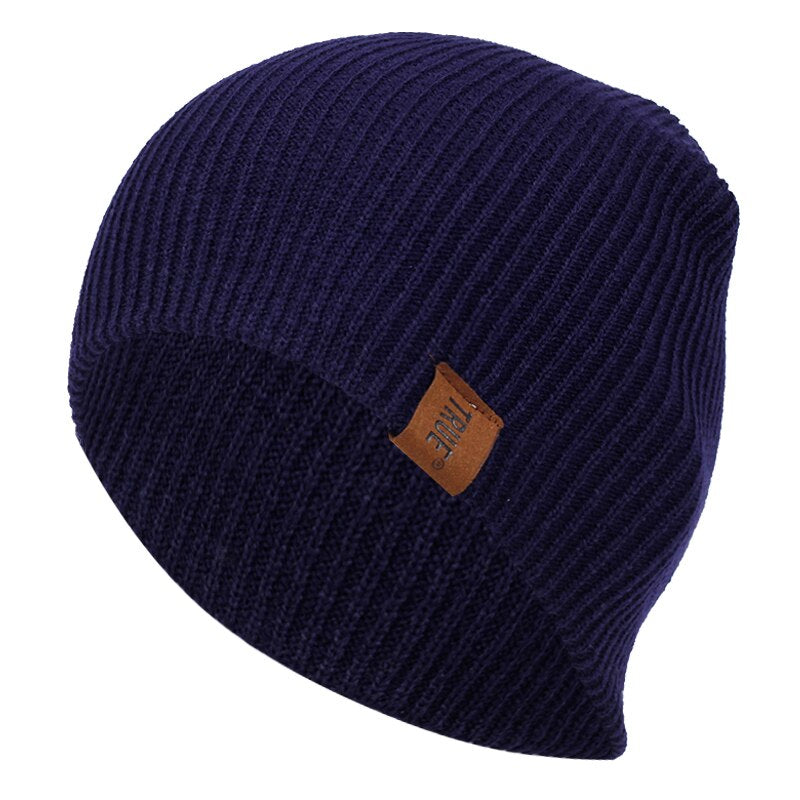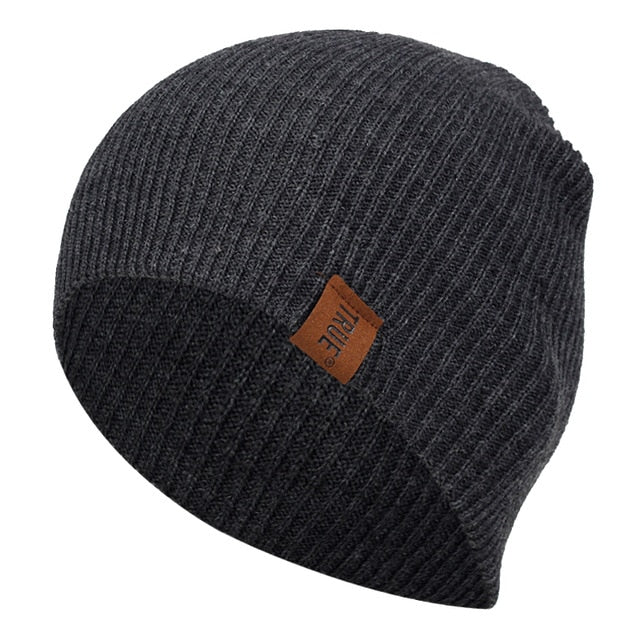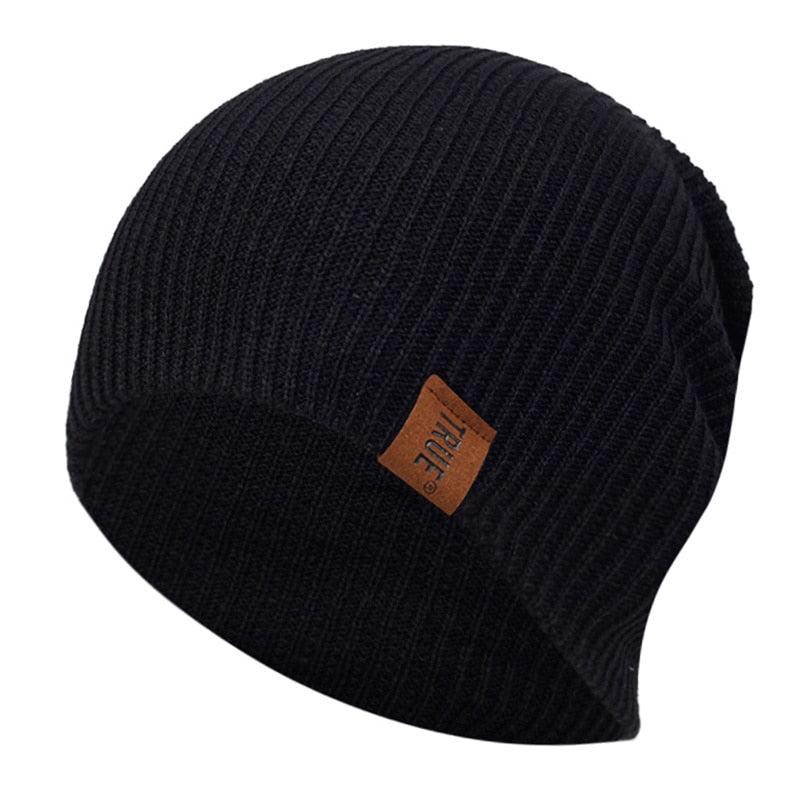 1 Pcs Hat PU Letter True Casual Beanies for Men Women Warm Knitted Winter Hat Fashion Solid Hip-hop Beanie Hat Unisex Cap