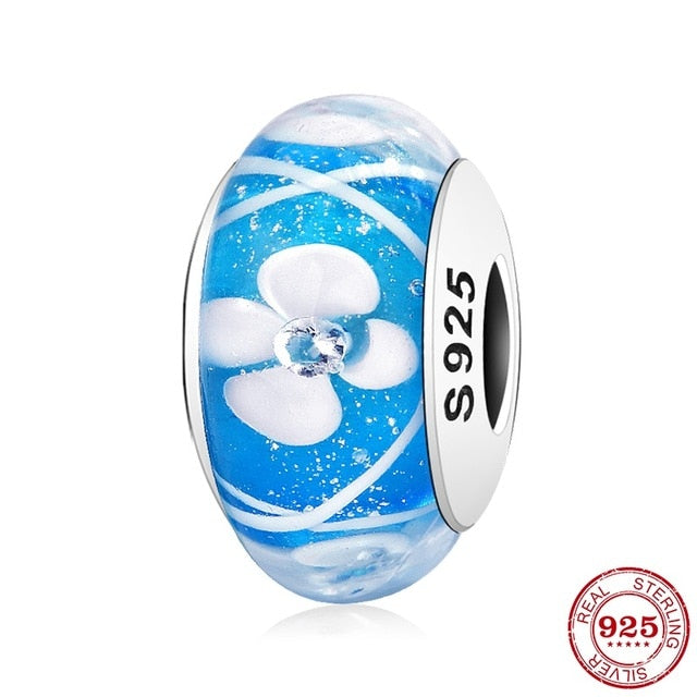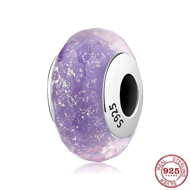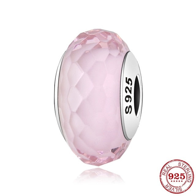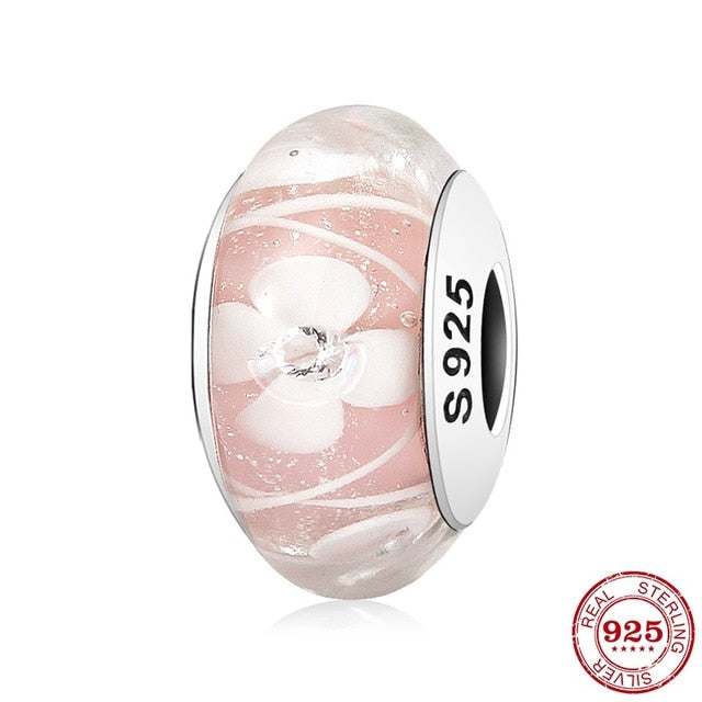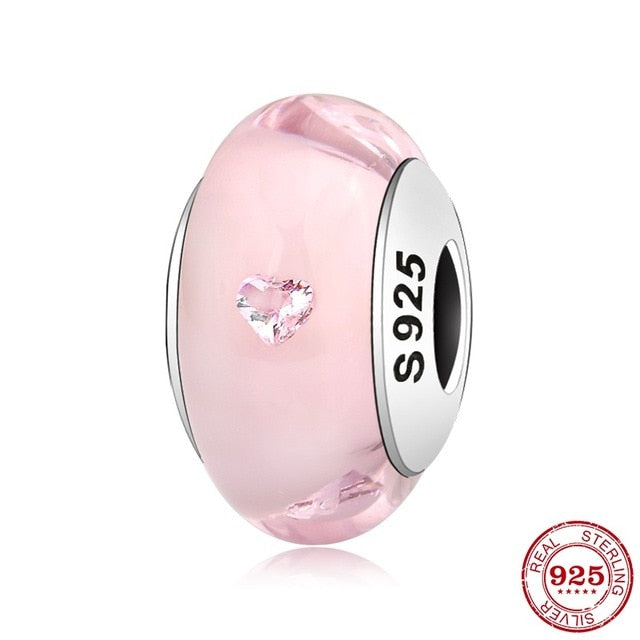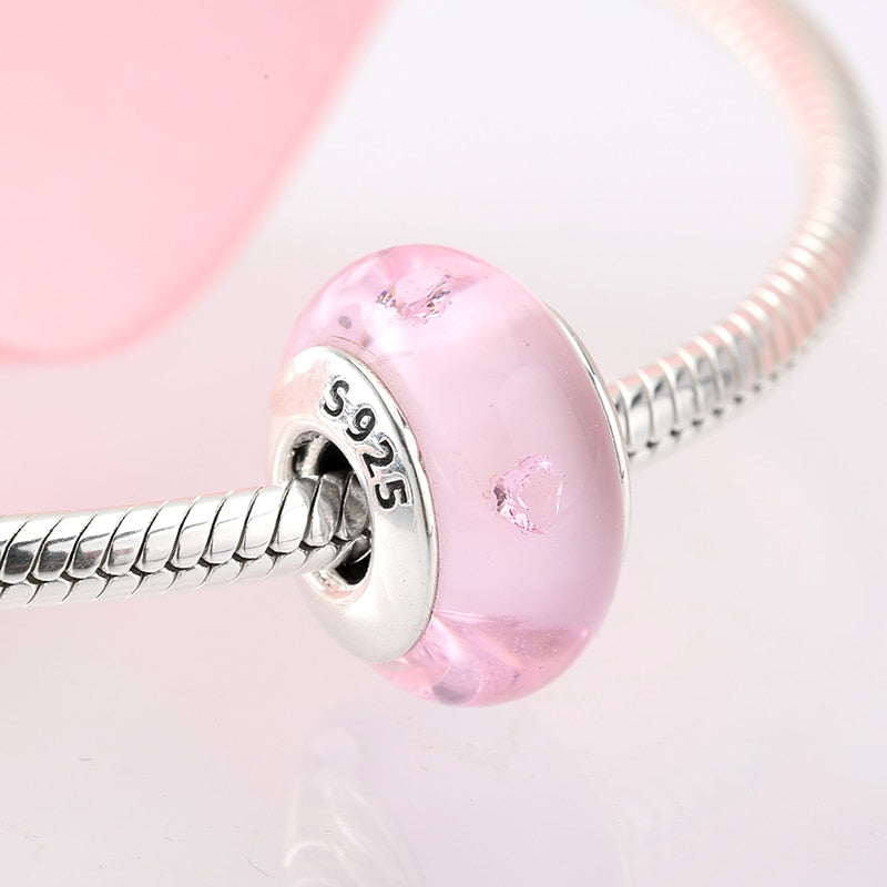 100% Authentic 925 Sterling Silver Pink heart Murano Glass Beads Fit Original Pandora Charms Bracelet Jewelry