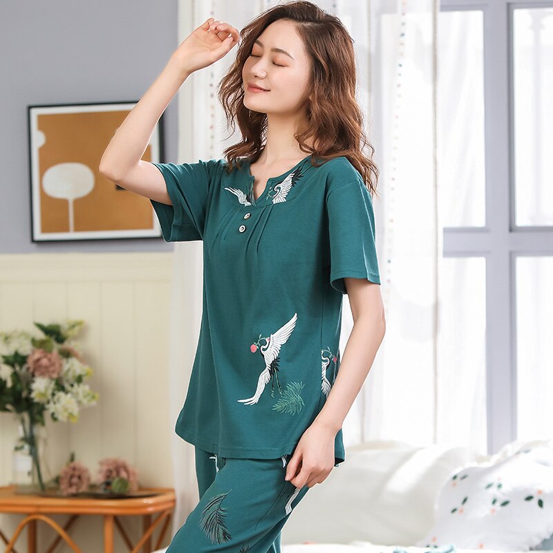 100% Cotton Women Pajamas Sets Animal Print Lady Sleepwear Women's Pijamas Suit Home Clothes Pyjama Femme M L XL XXL XXXL