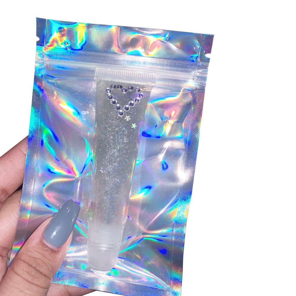 100pcs S/M/L Flat Zip lock Bath Salt Cosmetic Bag One Side Clear Holographic Laser Mini Aluminum Foil Zip Lock Bags Thick