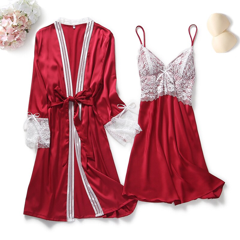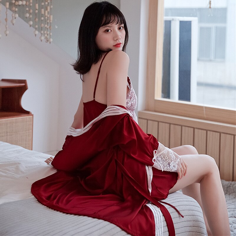 2 PIECES Sexy Ladies Nightwear Pijama Women Nightgown