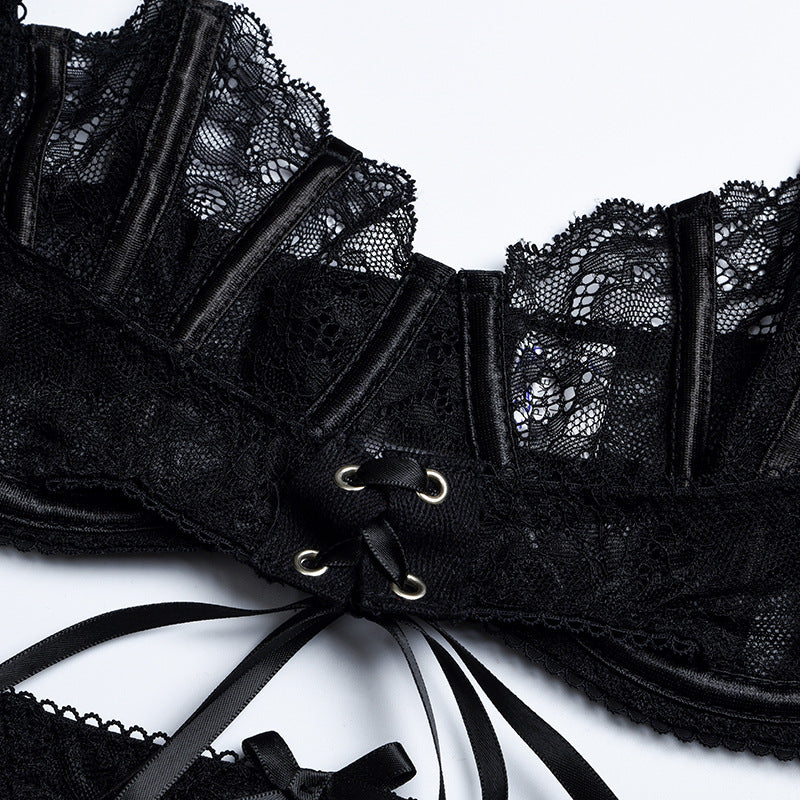 2 Pieces Set Sensuall Lingerie Exotic Costumes Lace Push Up Bras Suit With Garters Straps Bondage Erotic Underwear Outfits Set