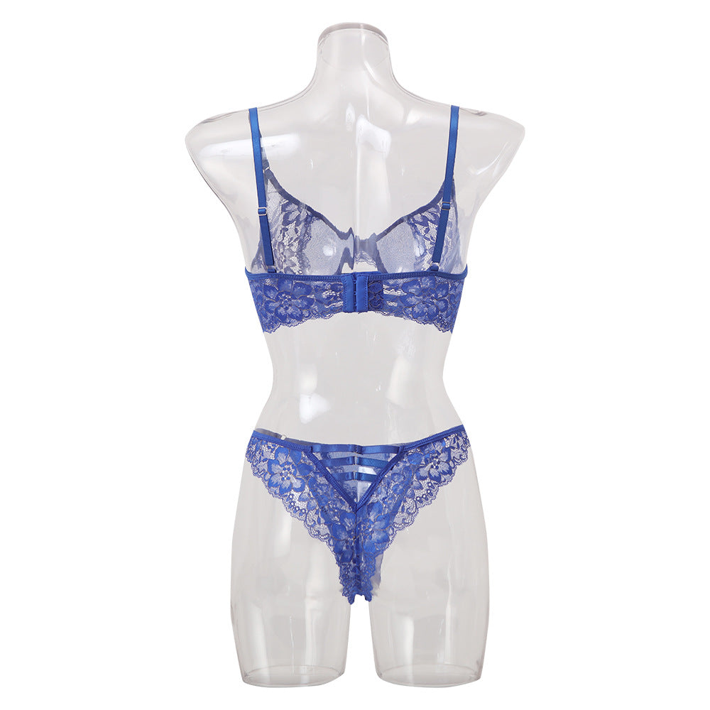 2 Pieces Women Sexy Lingerie Lace Mesh Patchwork Underwear Transparent Bra and Panty Set Bondage Sensual Erotic Temptation Set
