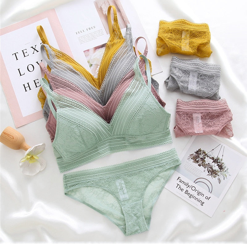 2020 Sexy Bras For Women French Wire Free Thin Padded Bra Set Big Chest Lace Push Up Underwear Sets Girl Candy Colour Bralette