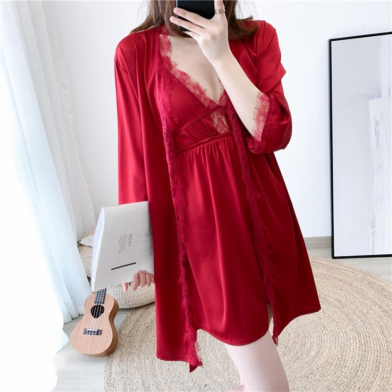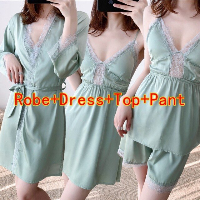 2020 Summer 4PCS Silk Satin Lace Sexy Lingerie Nightgowns Robes Sets for Women Bathrobes Sleepwear Nightdress Night Dress Nighty