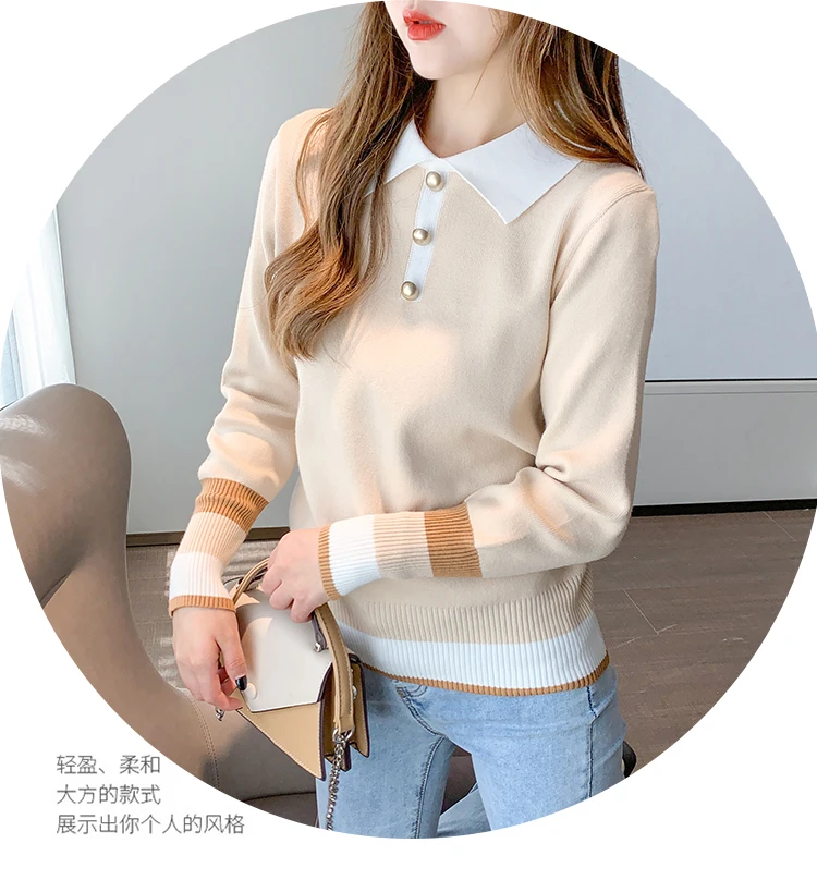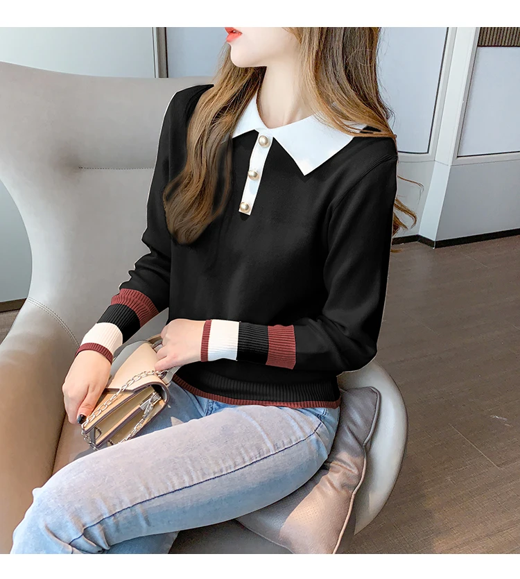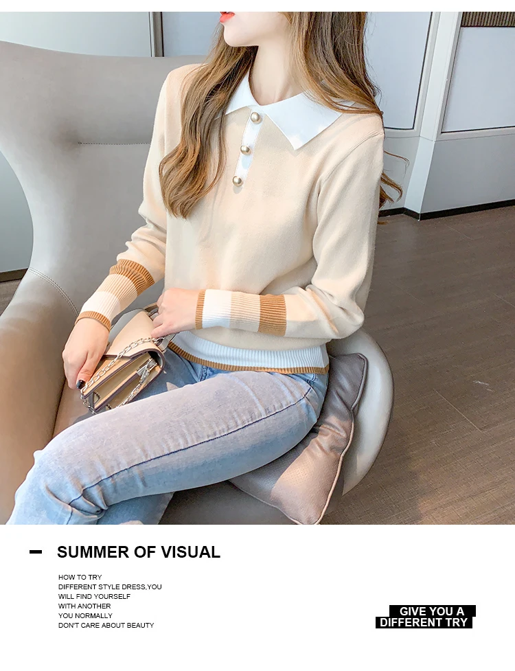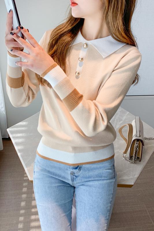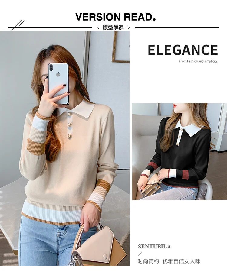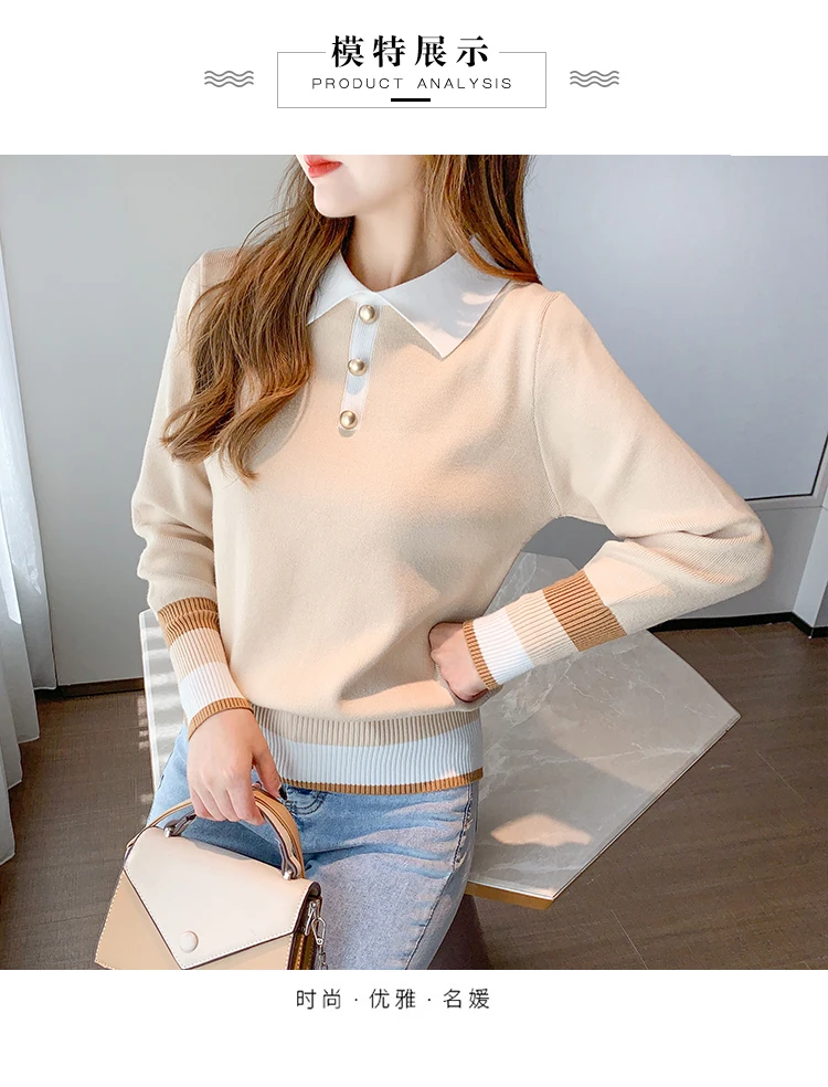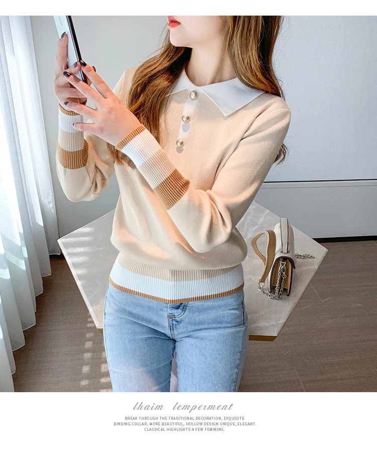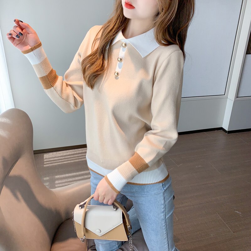 2021 Autumn and Winter New Shirt Collar Women's Sweater Temperament Bottoming Shirt Tops Are Thin and Western