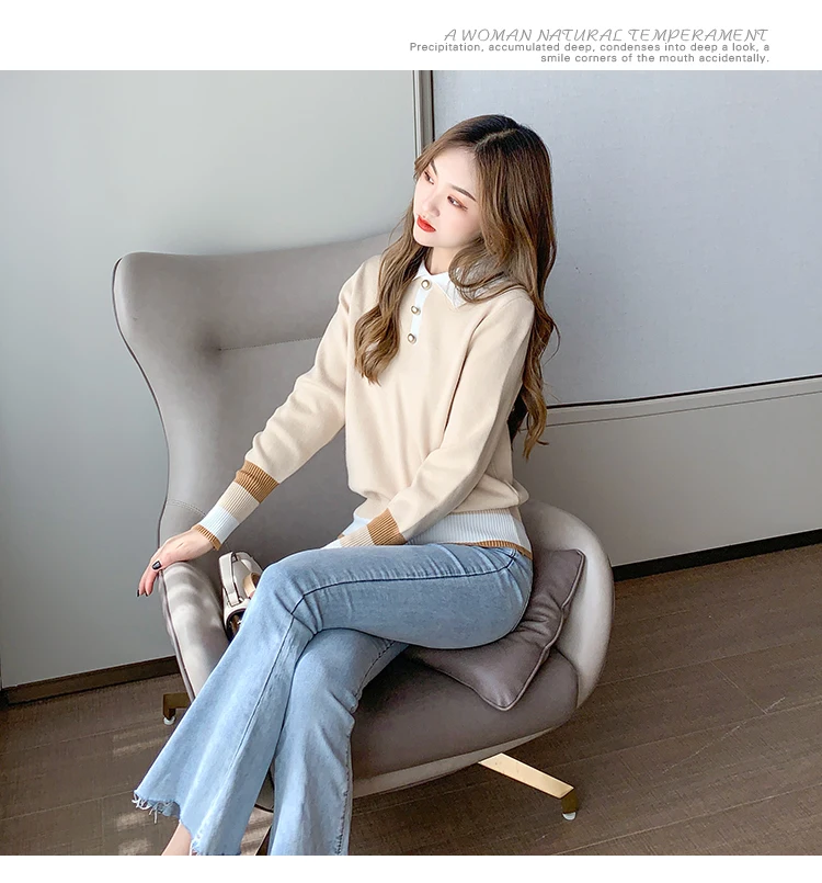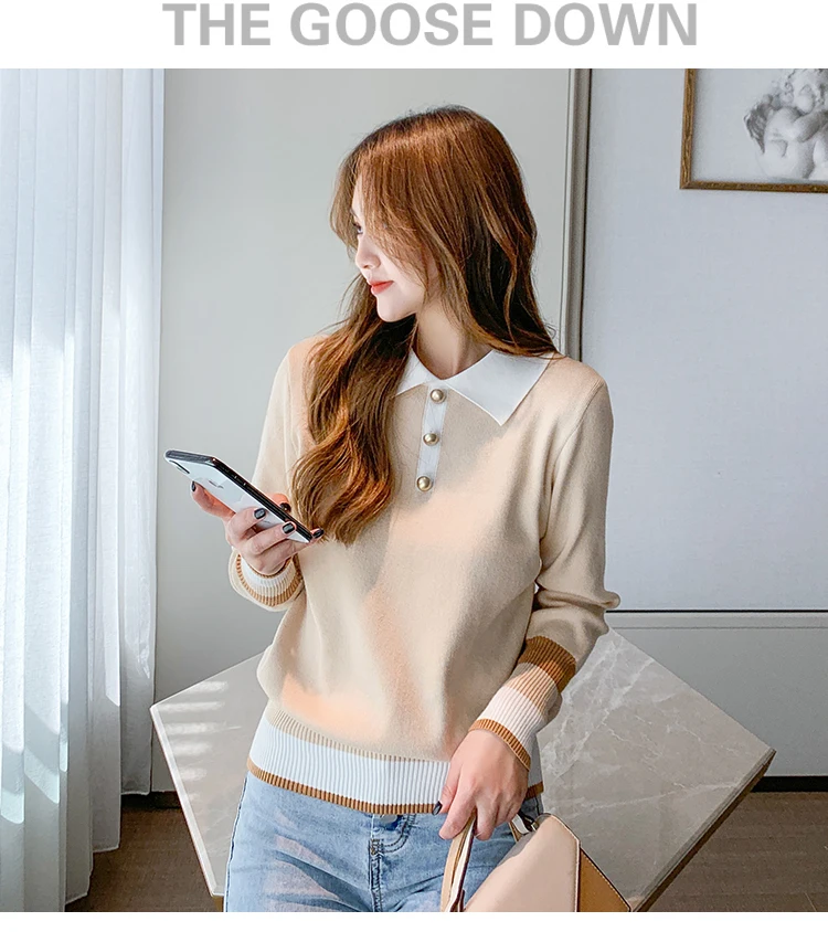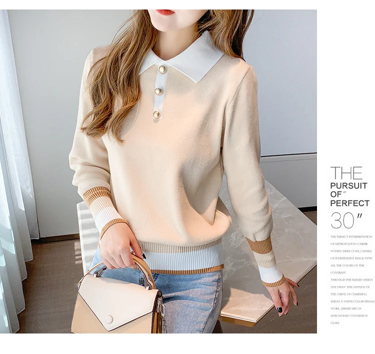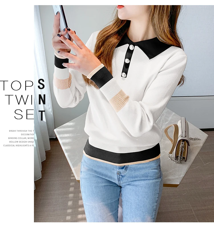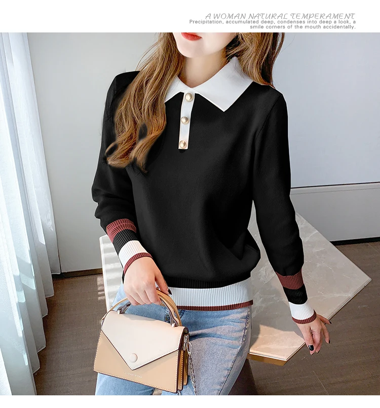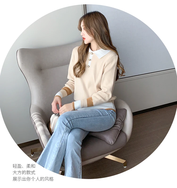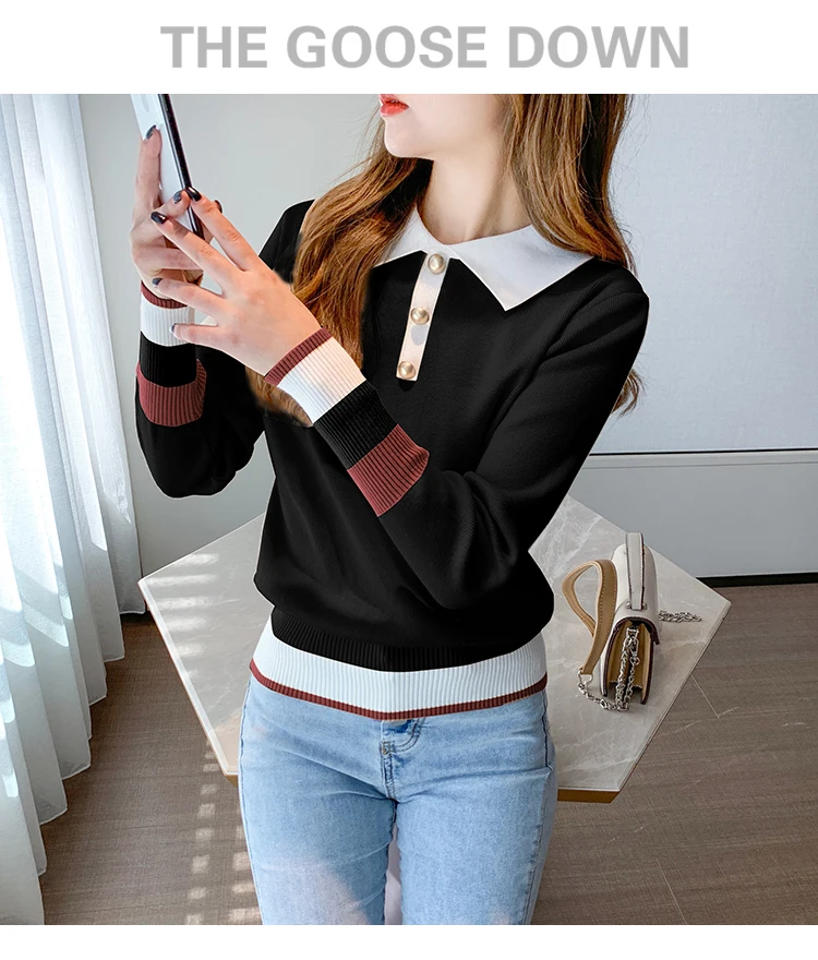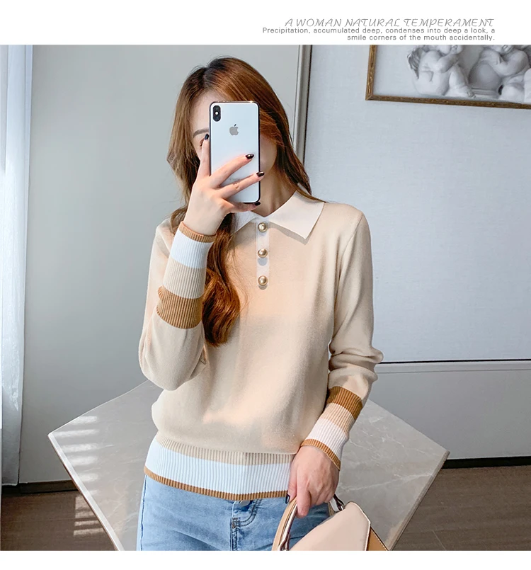 2021 Autumn and Winter New Shirt Collar Women's Sweater Temperament Bottoming Shirt Tops Are Thin and Western