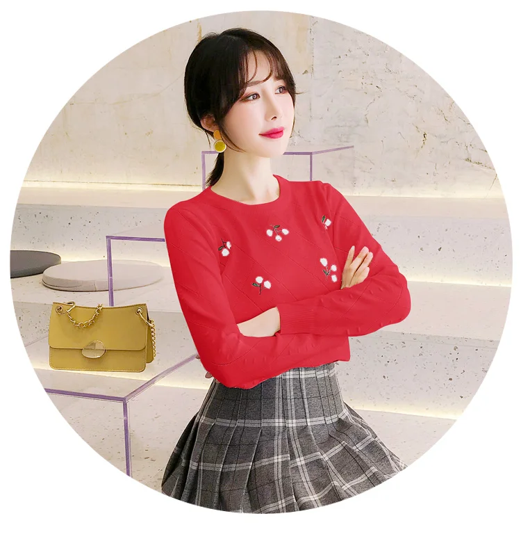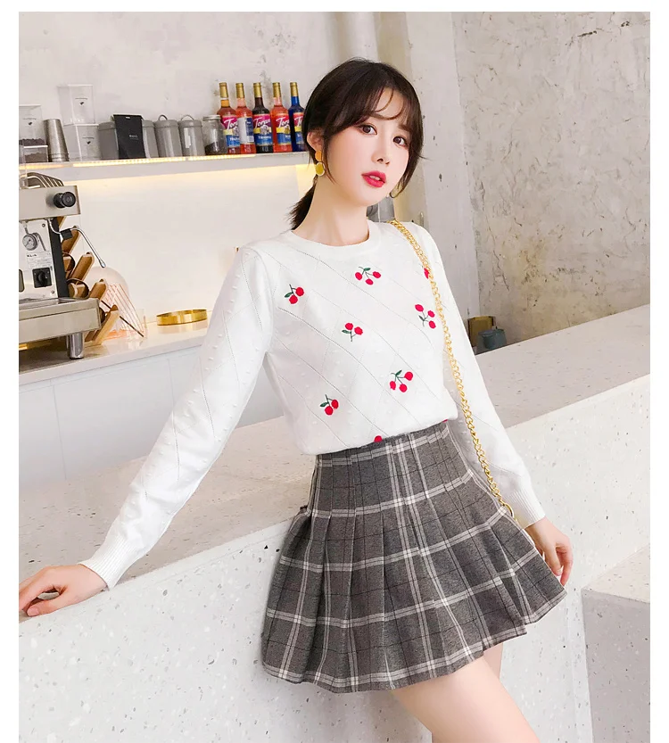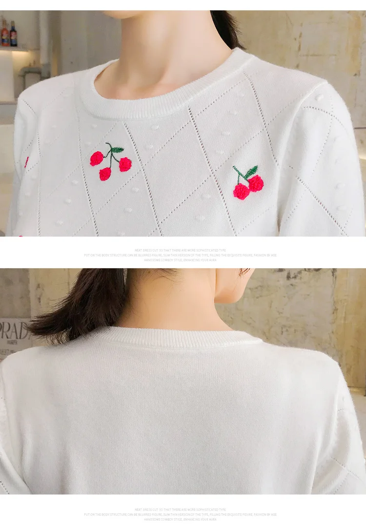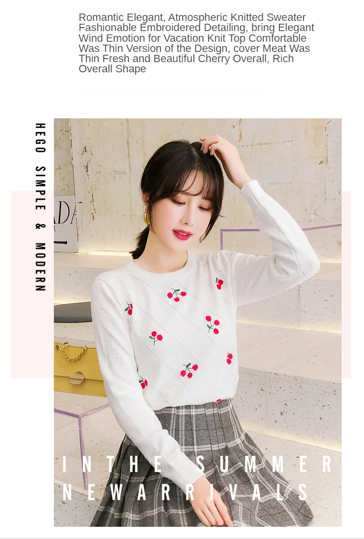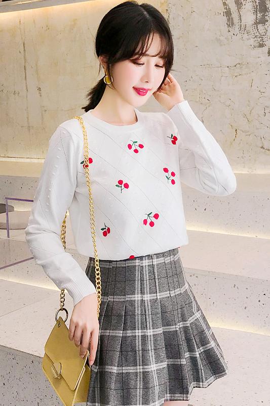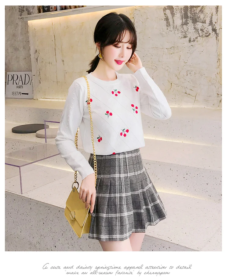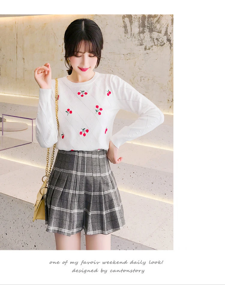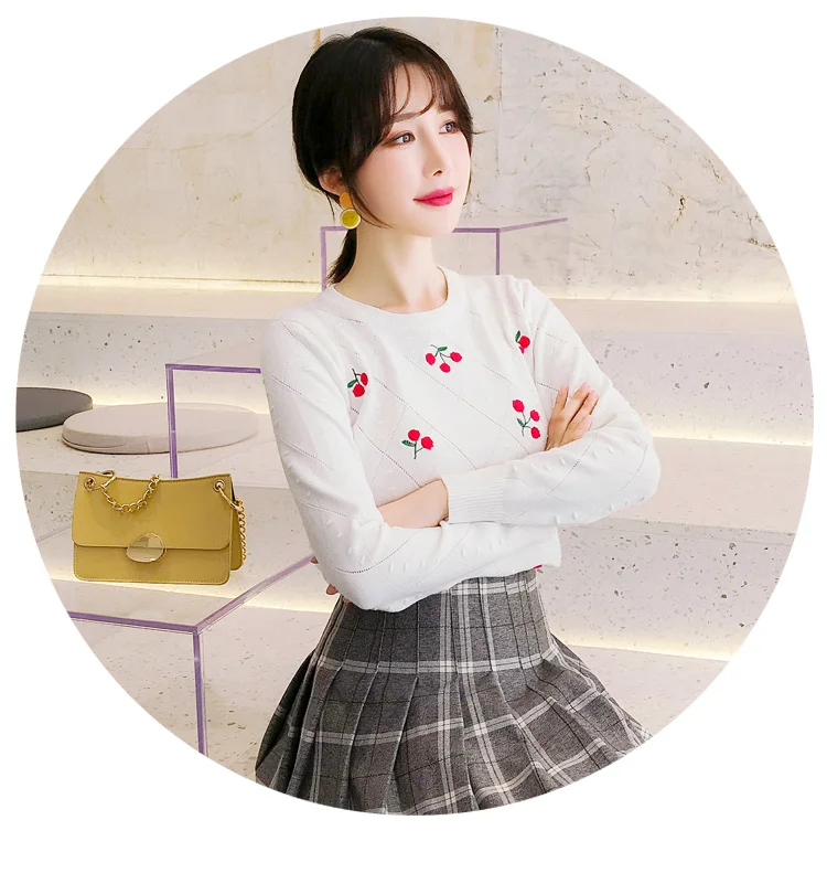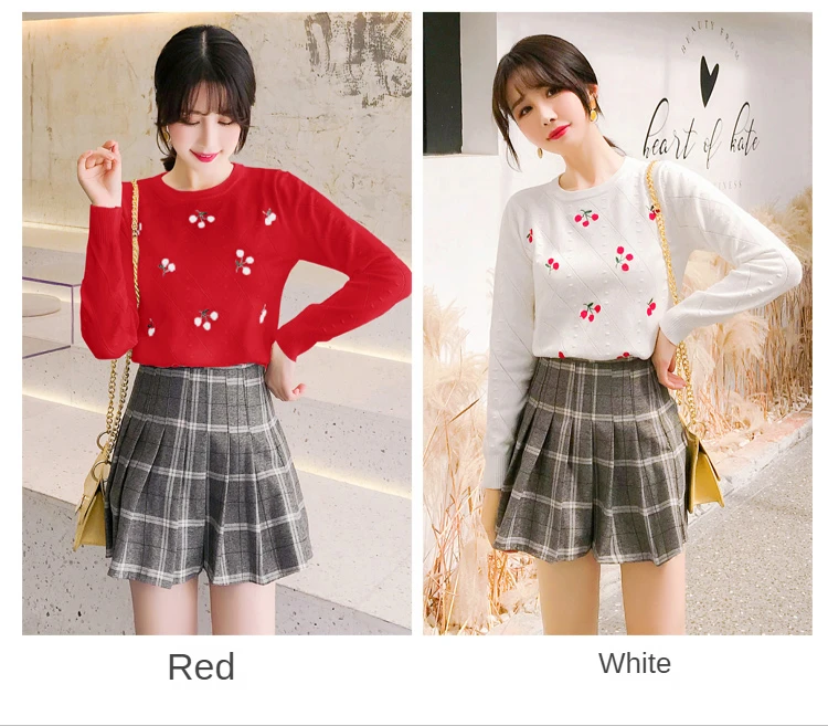 2021 Autumn Net Red Cherry Print Korean Sweater Pullover Sweater Bottoming Shirt Top Heavy Industry Women