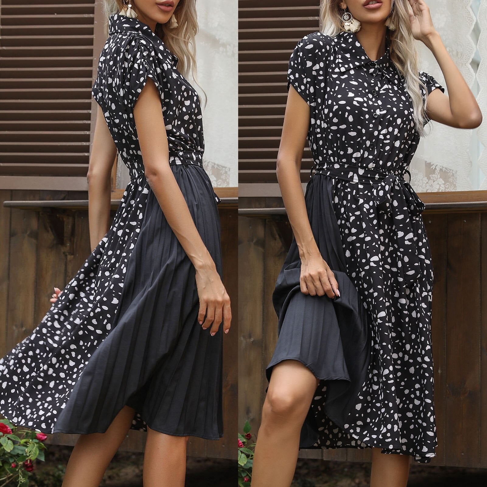 Featuring floral print, turn-down collar, button-down, short sleeves, waist belt, and pleated splicing, this midi dress is elegant and chic for summer. Fit for a date, street, travel, holidays, party, etc.