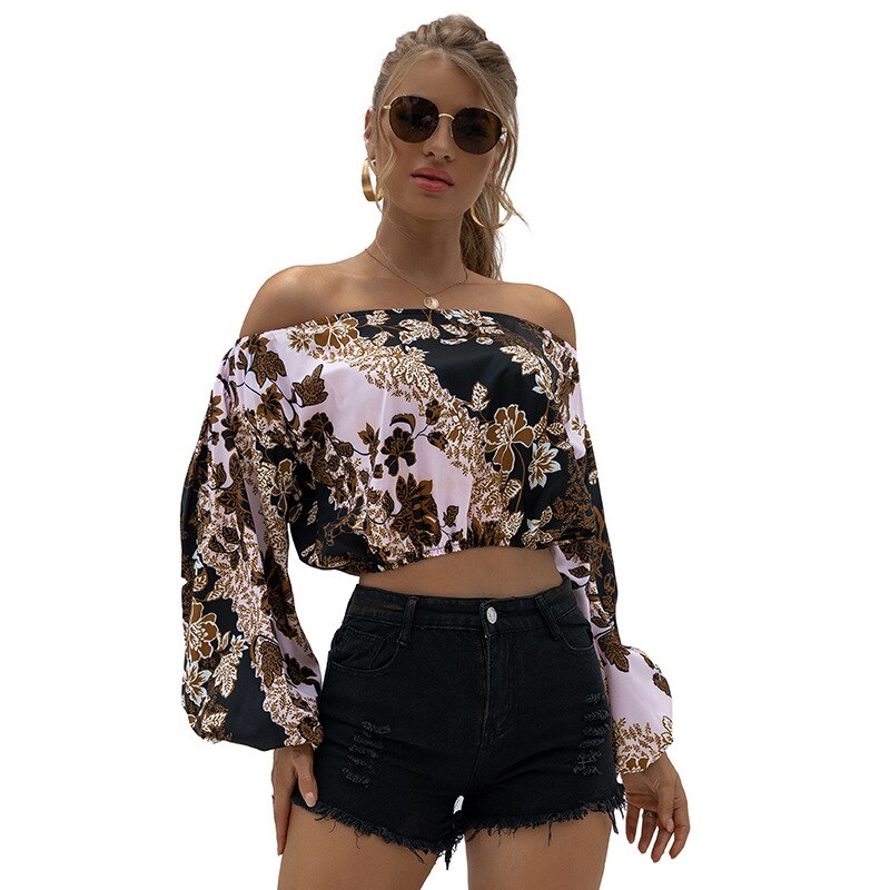 2021 Floral Women Blouse Summer Crop Tops Spring Slash Collar Print Shirts Sexy Off Shoulder Puff Long Sleeve Blouses Blusas