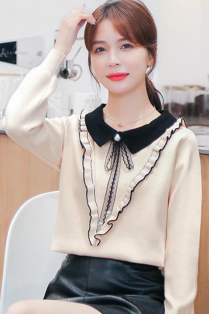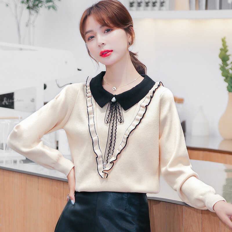 2021 New Autumn and Winter All-match Women's Sweater Loose Outer Knit Bottoming Shirt Western Style Blouse