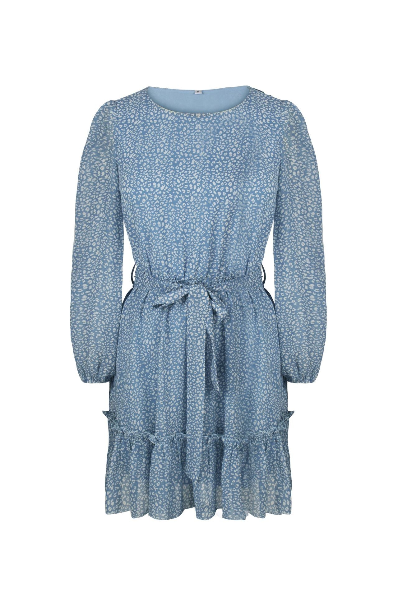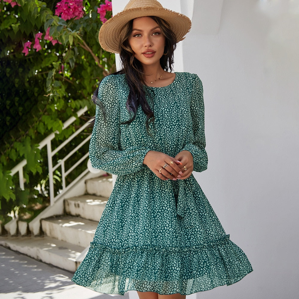 2021 New Autumn O-neck Dress Women Printing Long-Sleeve Casual Loose Dot Plue Size Dress Elegant Lace Up Party Mini Dresses