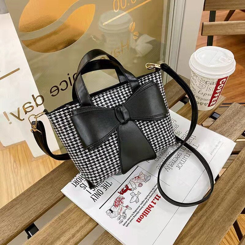 2021 new portable plaid trend woolen material bow messenger bag one drop delivery