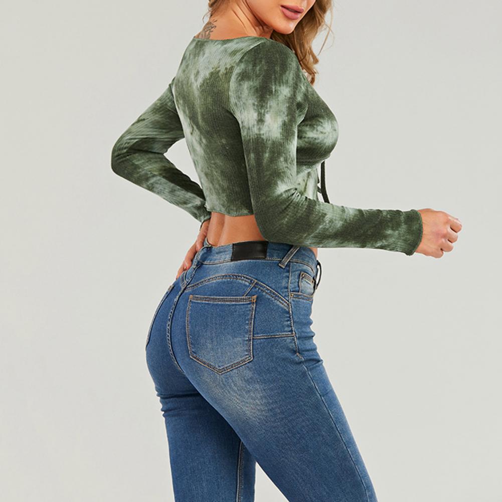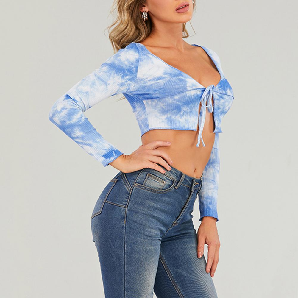 Crop Top Tie-dye Skin-friendly Women Sexy Knitted V Neck Shirt for Spring Summer
