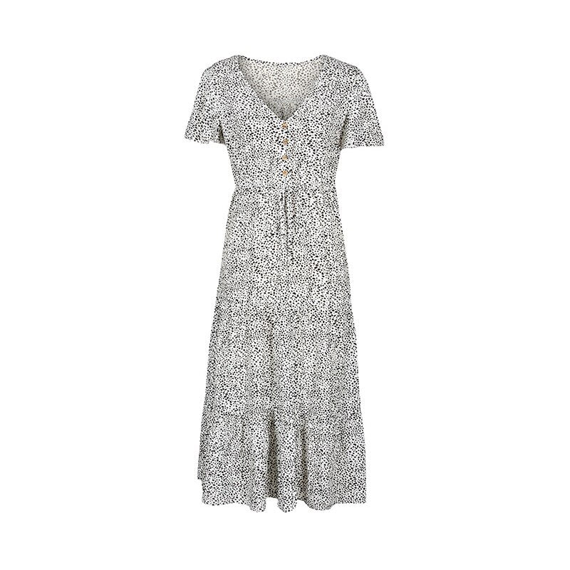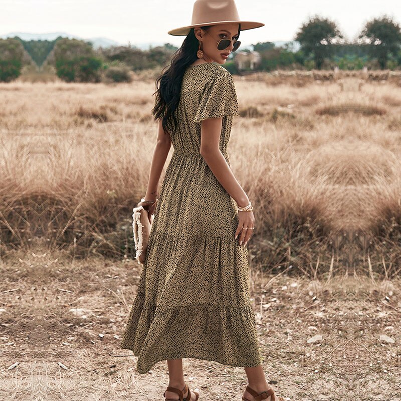 2021 New Spring Print Long Dress Women V Neck Short Sleeve Lace Up Button Dress For Woman Sexy Leopard Summer Dress