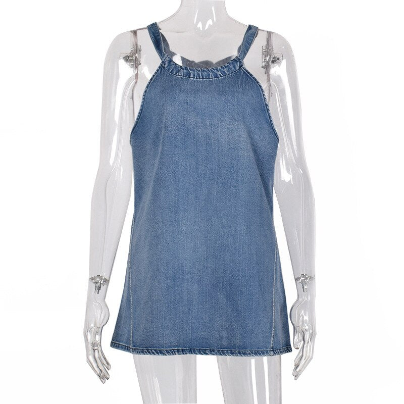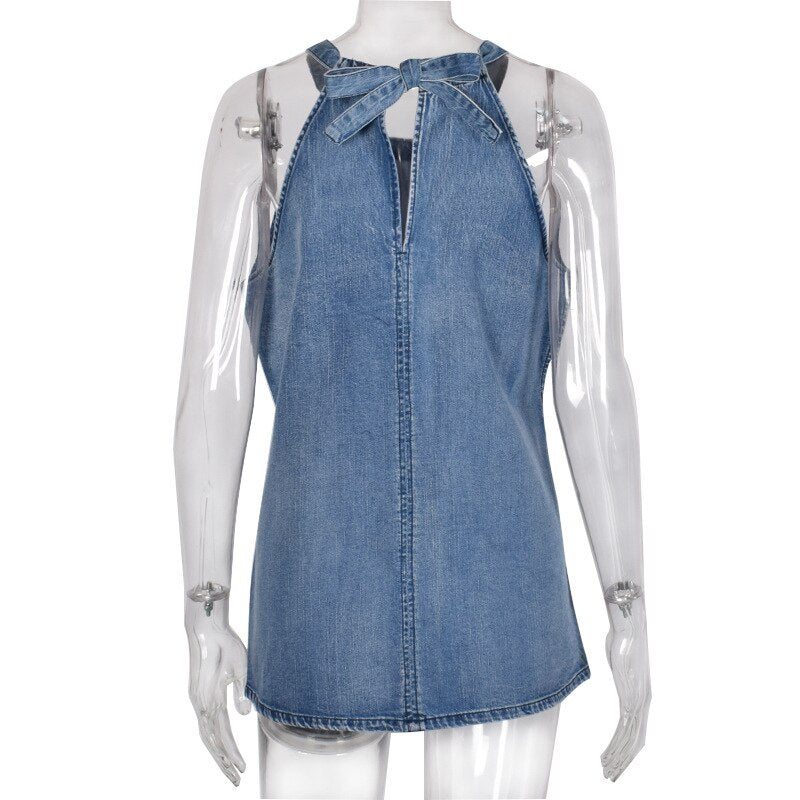 2021 New Summer Female Denim Tank Tops Sexy Backless T-Shirt Vest Women Sleeveless Blue Solid Casual Blouse Women