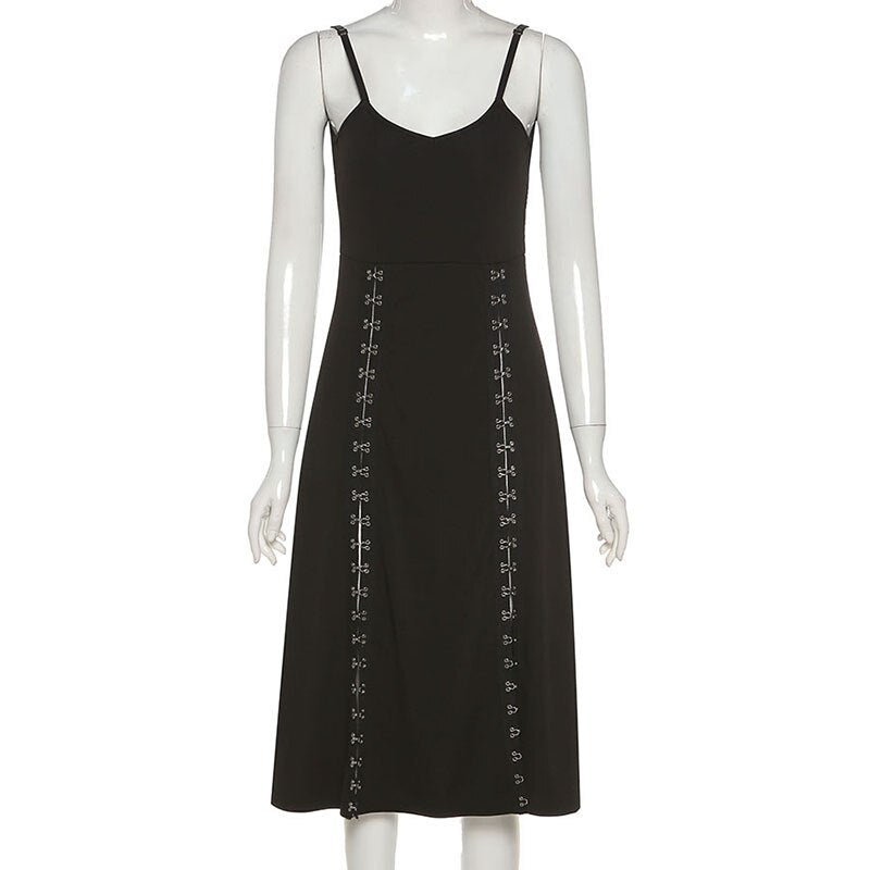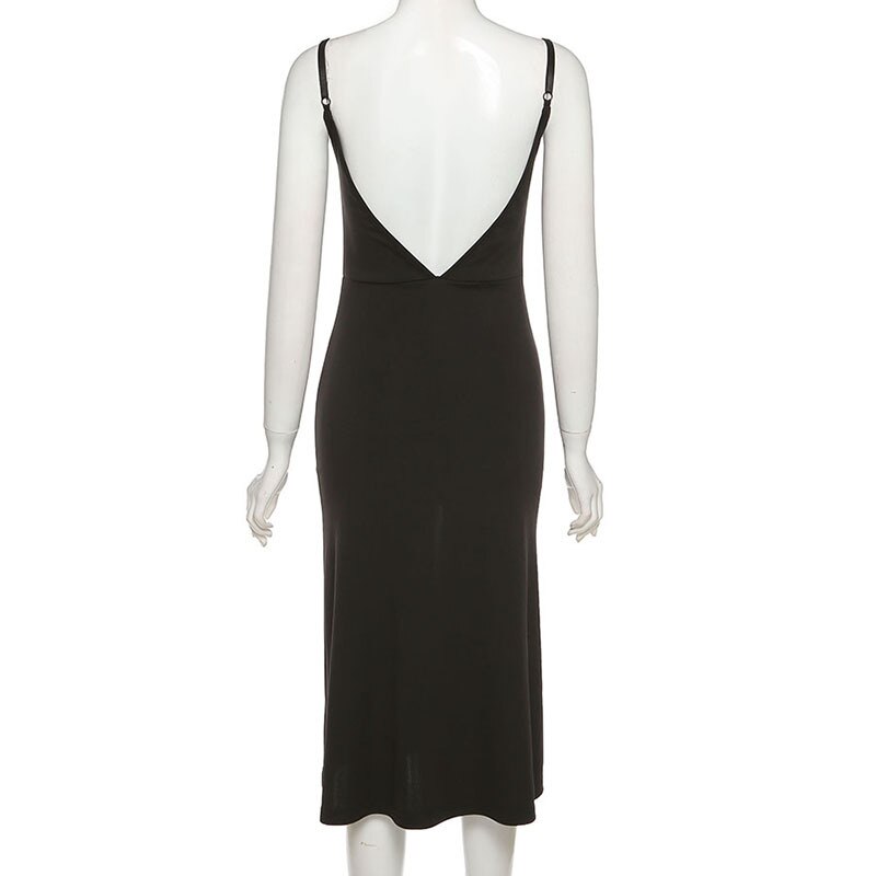 2021 New Summer Split Spaghetti Strap Dress Women Sexy V Neck Backless Ladies Medium Long Sling Sleeveless Party Dress