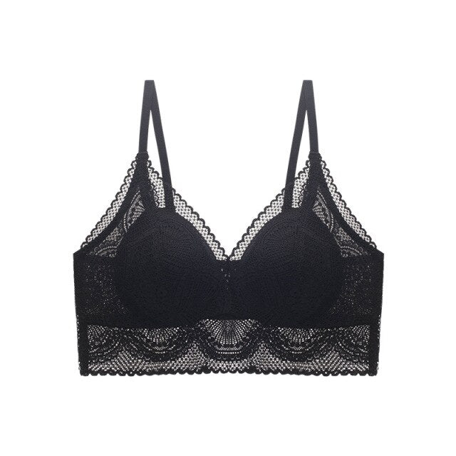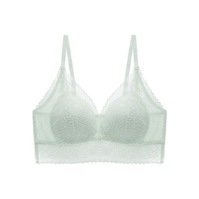 2021 New Summer Triangle Cup Lace Bra For Women Seamless Push Up Underwear Small Chest Bra One Piece Thin Sexy Lace Floral Bra