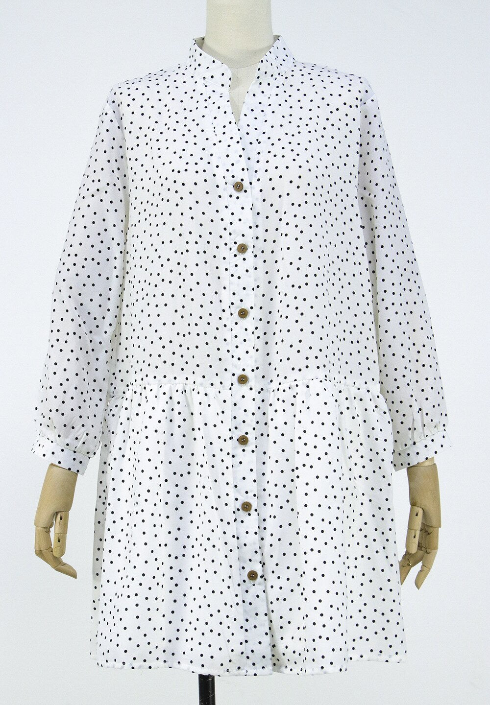 2021 New Summer White Loose Mini Dress 2021 Boho Beach Dress Fashion Long Sleeve V-neck Polka Dot Party Dress Sundress Vestidos