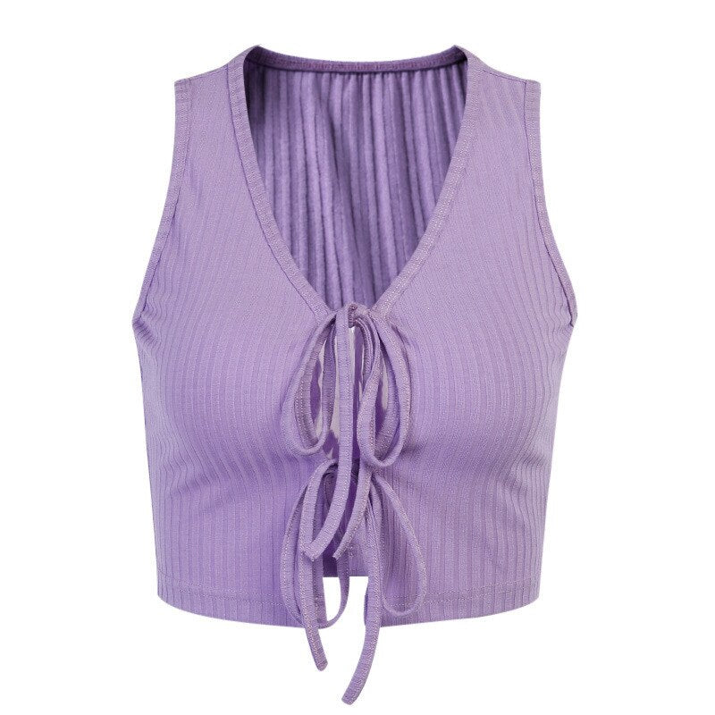 2021 New Summer Women Tank Top Sexy Bandage Solid Slim Cardigan V Neck Fashion Beautiful Temperament Purple Pink Black