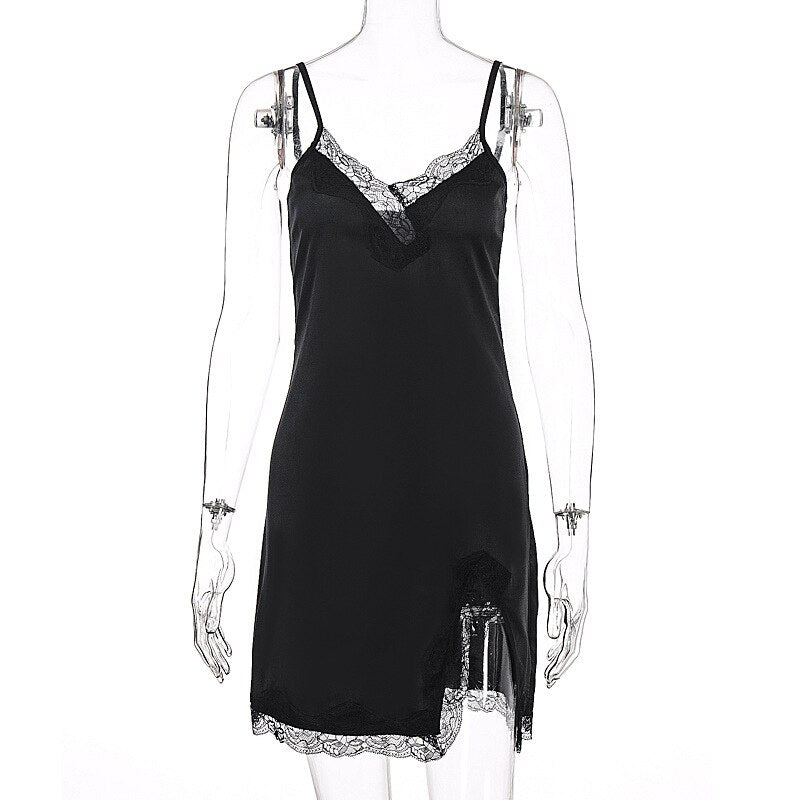 2021 sleeveless lace patchwork V-neck sexy slip mini slip dress summer women streetwear outfits sleep wear