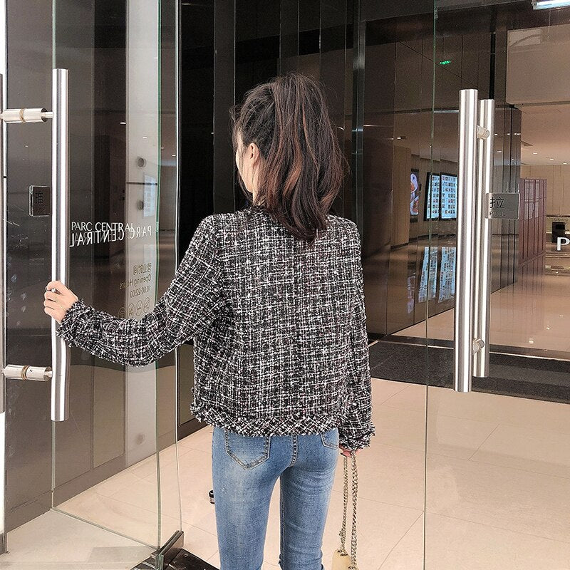 2021 Spring Autumn Small Fragrance women Plaid Tweed Jacket coat Women Korean Short chic Cardigan Outwear