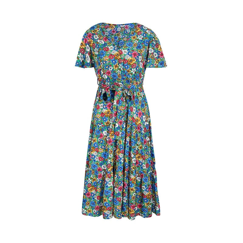 2021 Spring New Short Sleeve Floral Dress Women Casual High Waist Sexy V Neck Print Dress For Woman Summer Knee Length Dress