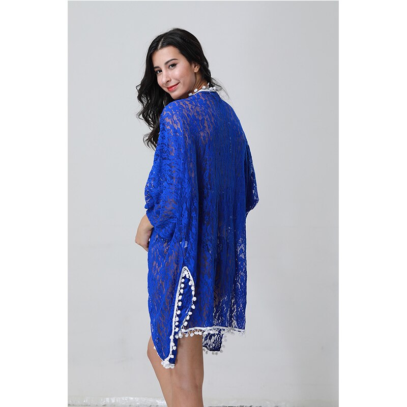 2021 Summer New Blue Camellia Cardigan Blouse Sexy Lace Quarter Sleeve Women
