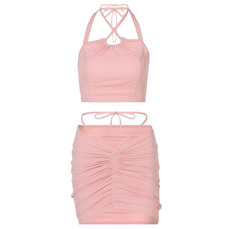 2021 Summer New Fashion Street Style Sexy Lace-Up Crop Top Slim Fit Skirt Set
