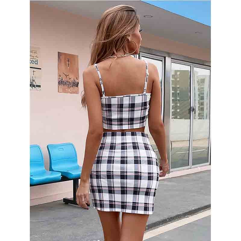 2021 Summer New Fashion Women's Temperament Lattice Sling Short Skirt Suit Two-Piece