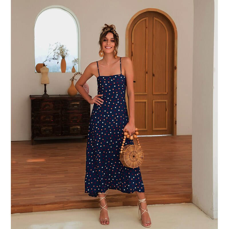 2021 Summer New Women's Fashion Casual Print Slash Neck Spaghetti Straps Sleeveless Backless Loose Waist Ankle Lenght Dress Lady
