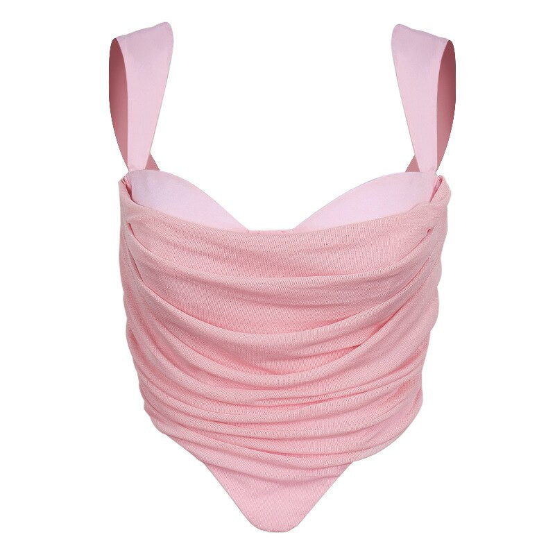 2021 Summer Women's New Style Sleeveless Sexy Mesh Gauze Folds Exposed Umbilical Short Outer Wear Camisole Tank