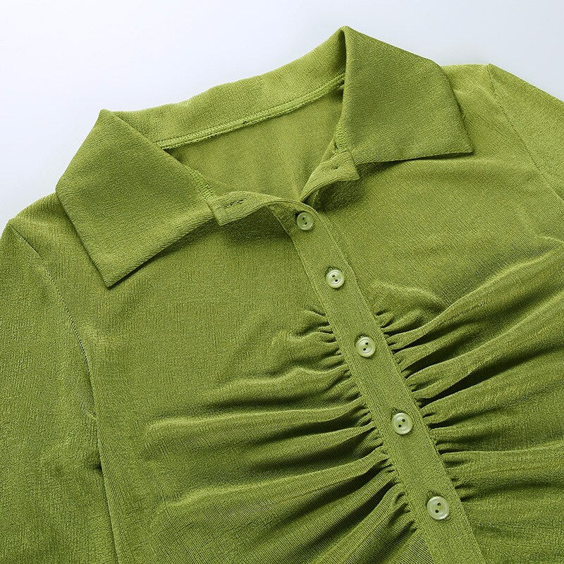 2022 Blue Sexy Women Crop Top Y2k V Neck Casual Ruched Long Sleeve Summer Green T Shirt Fashion Female Tee Vintage