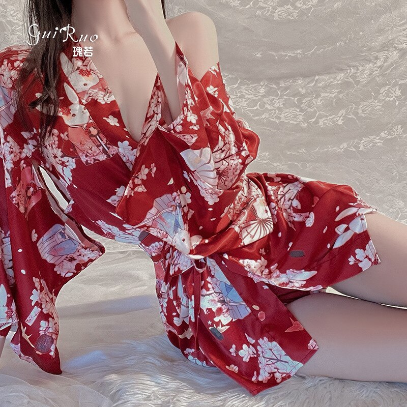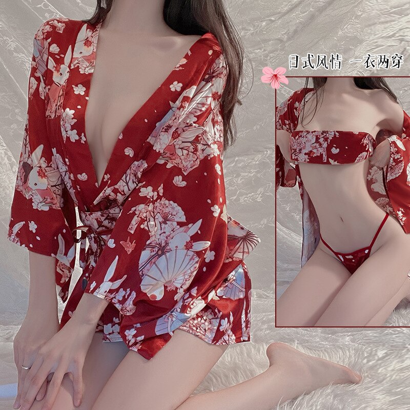 2022 Japanese Kawaii Kimono Uniform Sexy Lingerie For Women 3pcs Set Erotic Cosplay Temptation Costumes Robe Bathrobe Pajamas