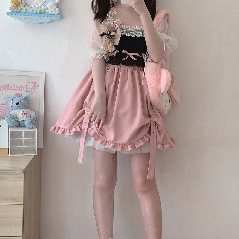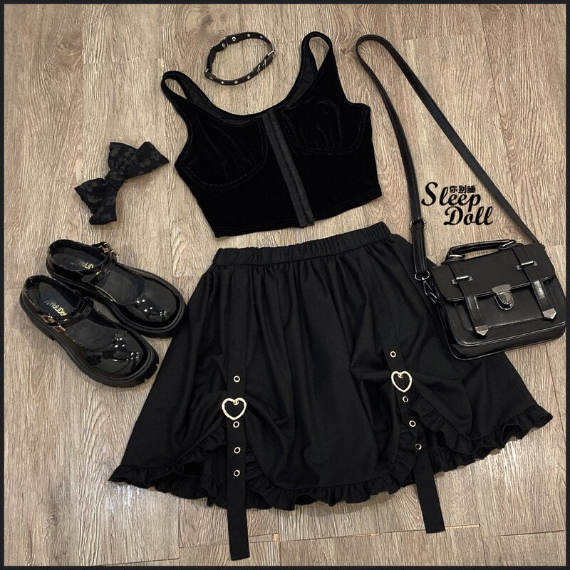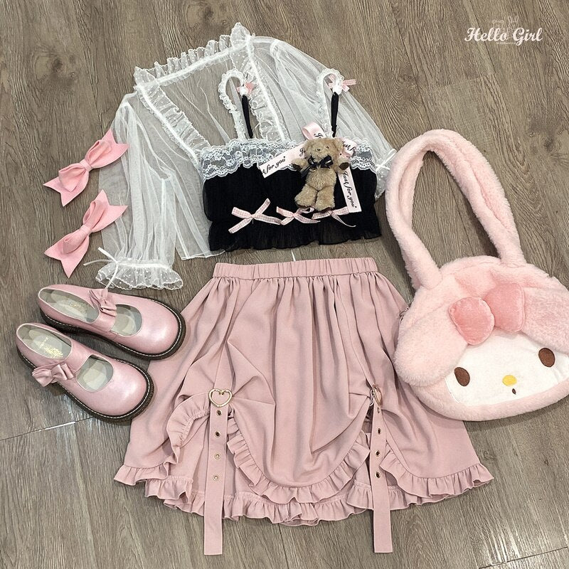2022 New Sweet Cute Skirts Spring Ball Gown Mini Skirt Mori Girls All Match Elastic Waist Ruffles Fresh Jupe Heart Faldas Mujer