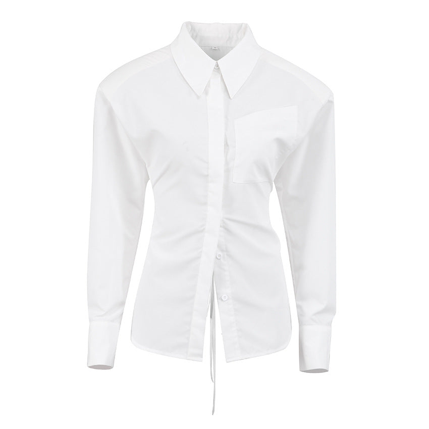 2022 Spring Fall Fashion Backless White Shirt Point Collar Shirt Long Sleeve Button Cardigan Casual Women‘s Clothes Work Streetw