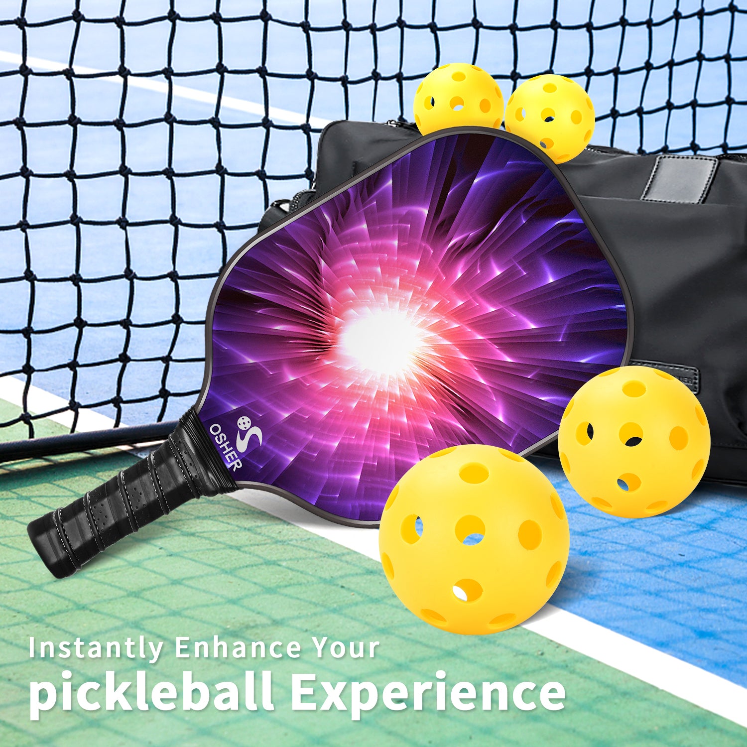 With the same thickness as a fingernail, OSHER pickleball paddle's graphite cover provides a firm, long-lasting paddle surface for perfect accuracy. The graphite surface is mechanically bonded to the polymer honeycomb core for a b yet flexible panel structure, providing consistent lobs, dinks, and volleys.